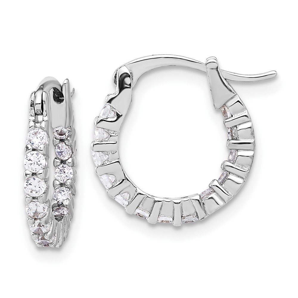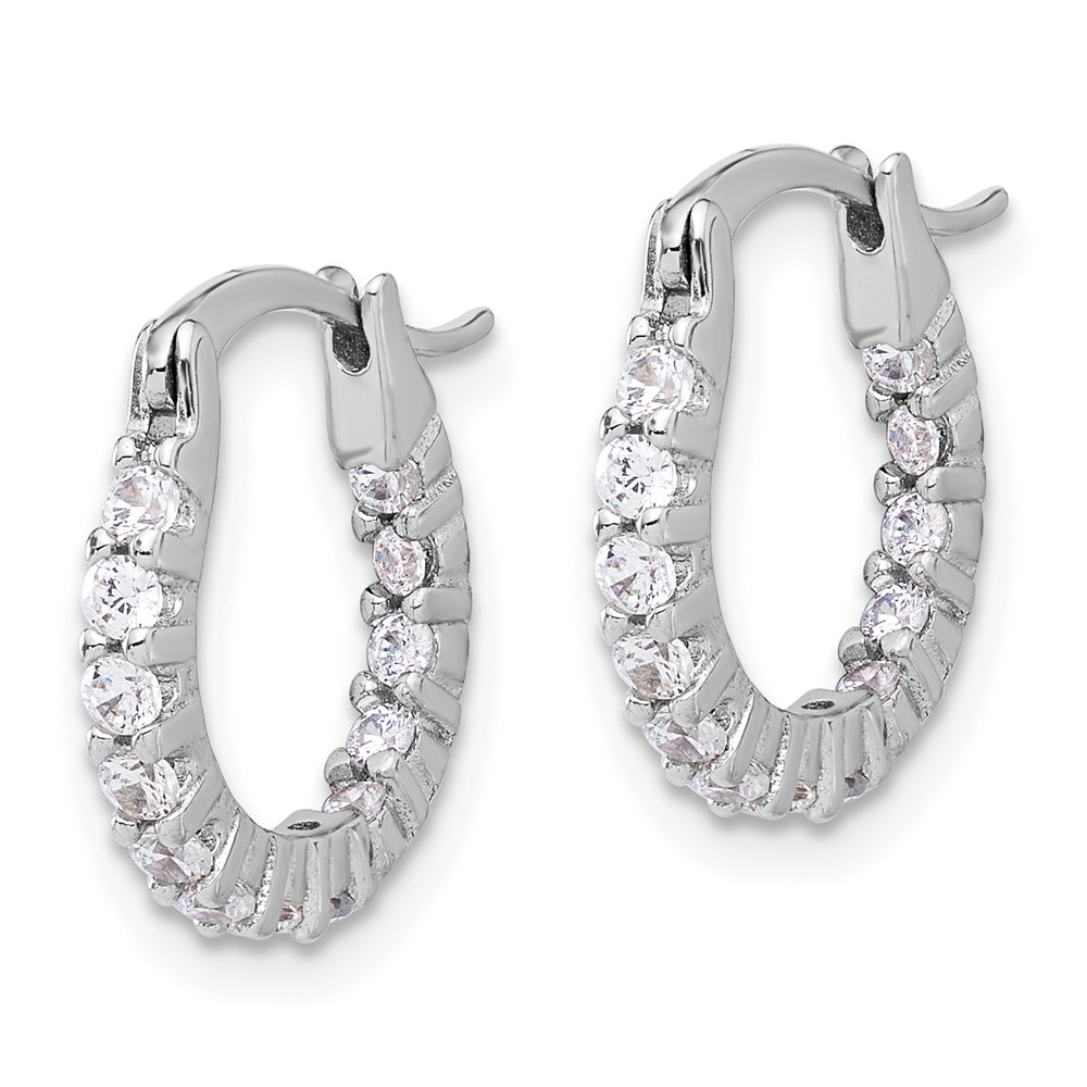 Sterling Silver Rhodium-plated 2mm CZ In/Out Hoop Earrings