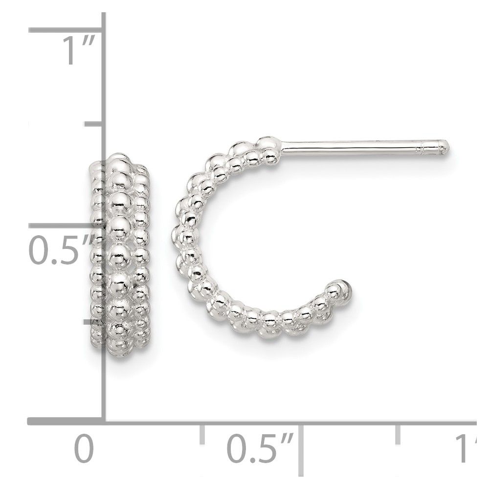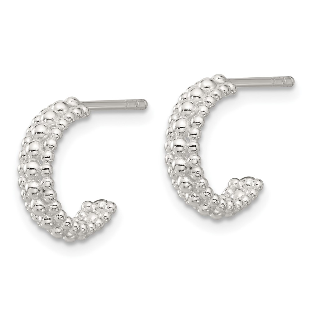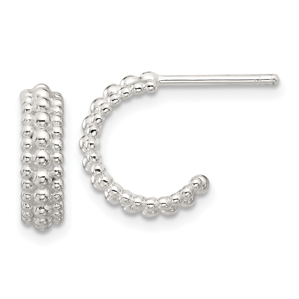 Sterling Silver E-coated Beaded C-Hoop Earrings