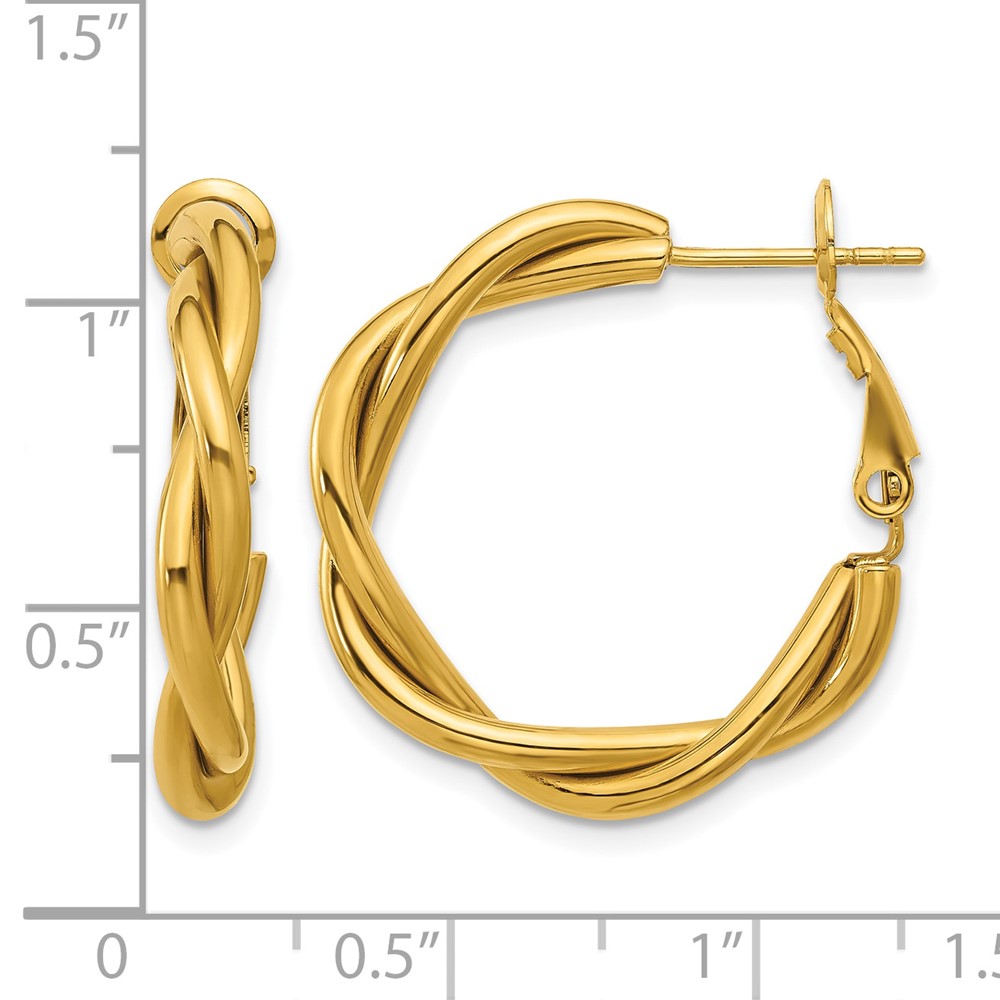 Chisel Stainless Steel Polished Yellow IP-plated Twisted Omega Back Hoop Earrings