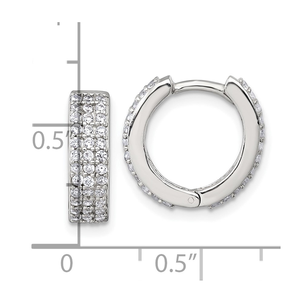 Sterling Silver Polished 16x4.5mm 3-Row CZ Hinged Round Hoop Earrings