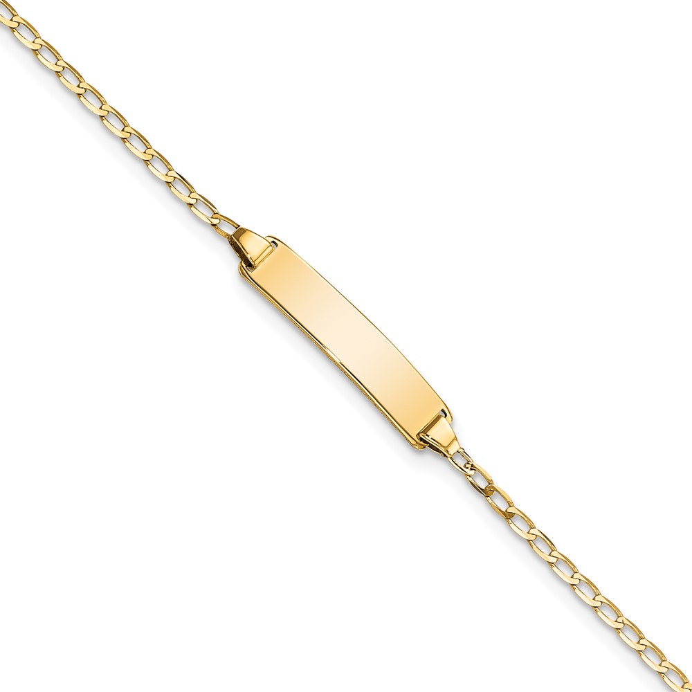 14k Polished Solid Chain/Solid Plate Flat Curb Link 19.5x3.5mm Plate 7 inch ID Bracelet