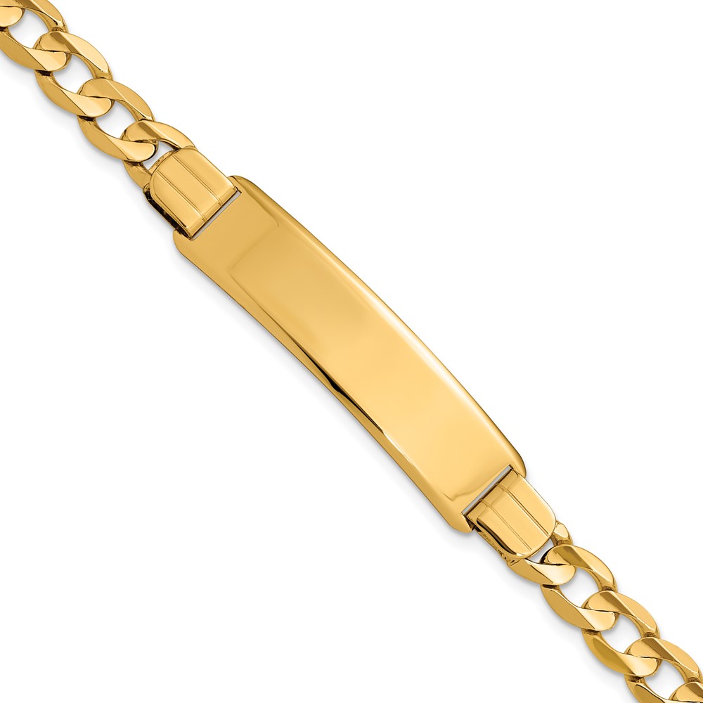 14k Polished Solid Chain/Solid Plate Curb Link 37x9mm Plate 8 inch ID Bracelet