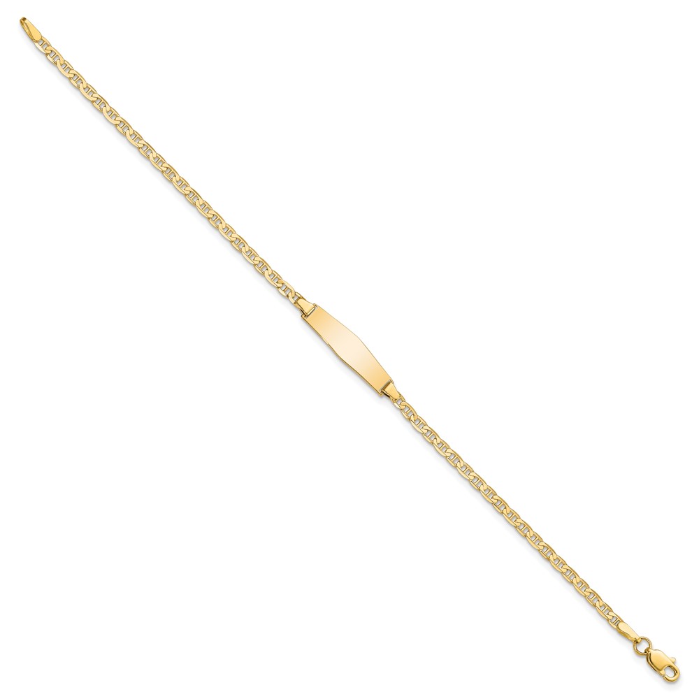 14k Polished Solid Chain/Solid Plate Flat Anchor Link Soft Diamond Shape 19.5x5.2mm Plate 7 inch ID Bracelet