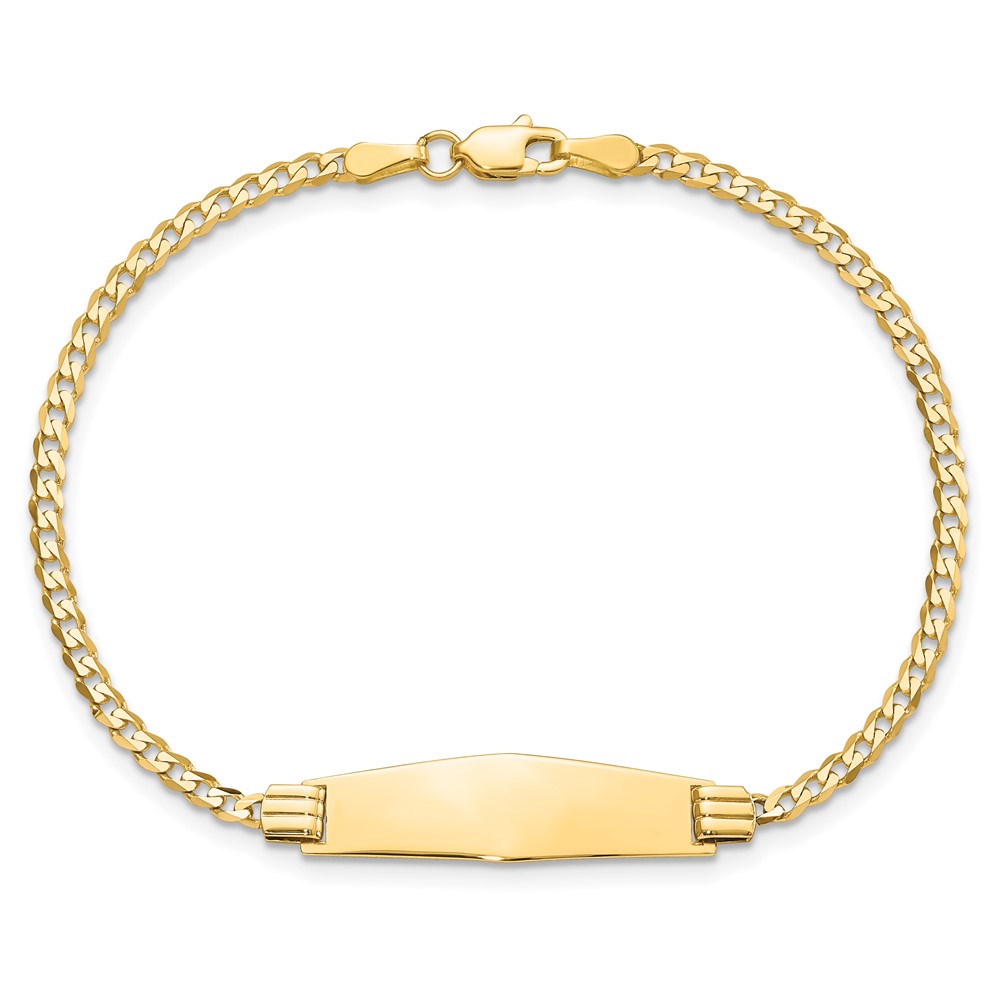 14k Polished Solid Chain/Solid Plate Curb Link Soft Diamond Shape 24.5x7.8mm Plate 7 inch ID Bracelet
