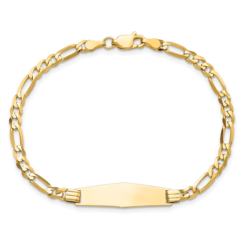 14k Polished Solid Chain/Solid Plate Figaro Link Soft Diamond Shape 24.5x7.3mm Plate 7 inch ID Bracelet