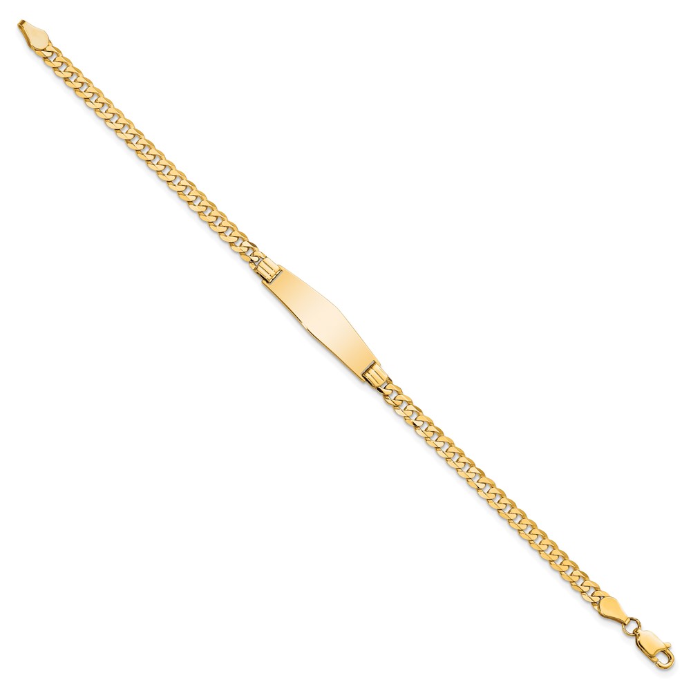 14k Polished Solid Chain/Solid Plate Curb Link Soft Diamond Shape 24.5x7.5mm Plate 8 inch ID Bracelet