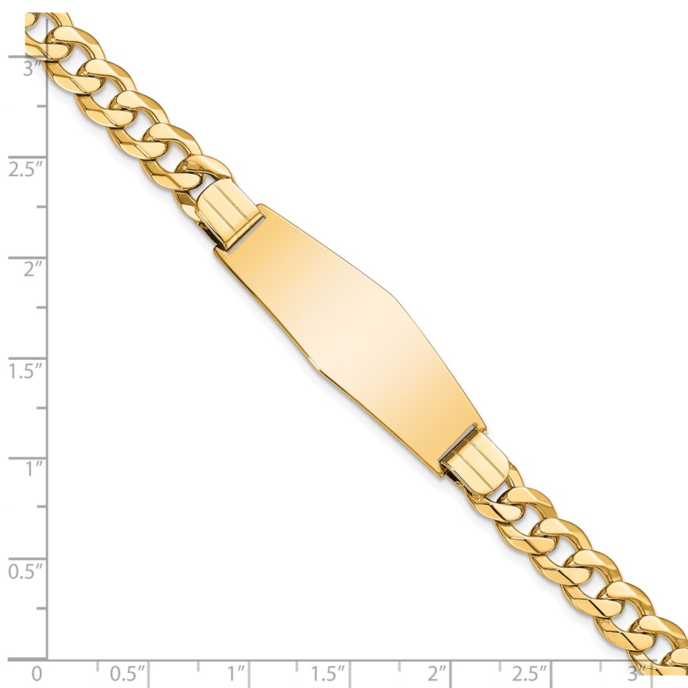14k Polished Solid Chain/Solid Plate Flat Curb Link Soft Diamond Shape 37.5x14mm Plate 8 inch ID Bracelet