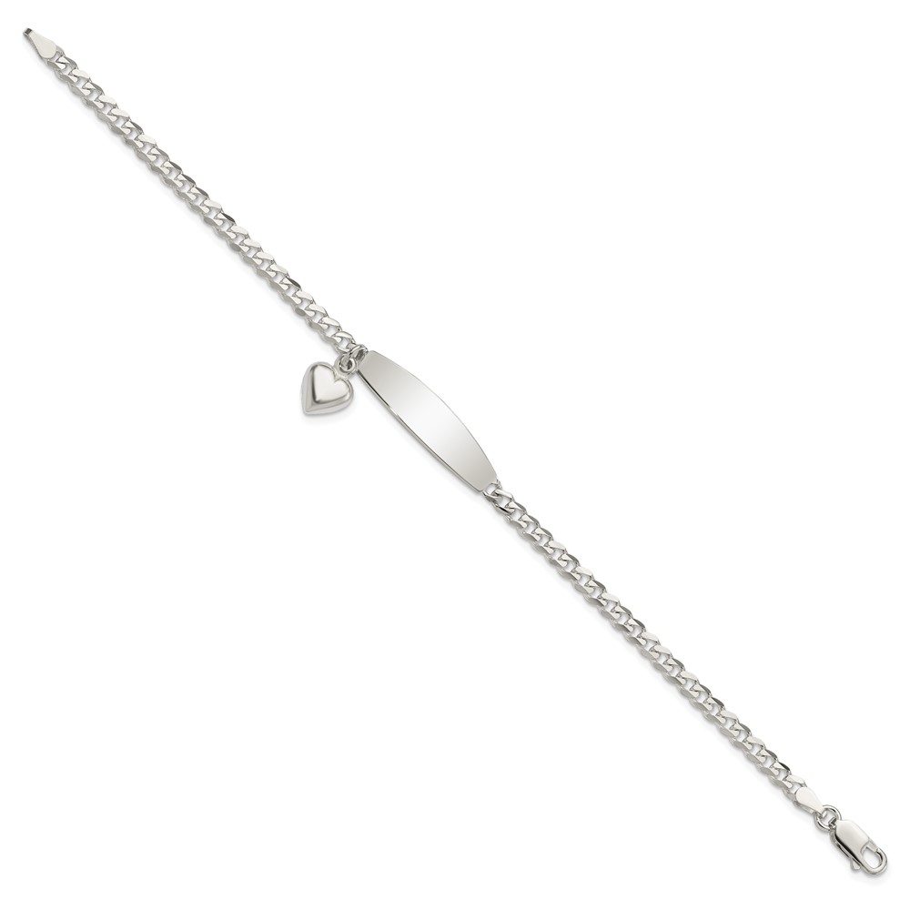 Sterling Silver Polished Curb Link ID Heart Dangle Bracelet
