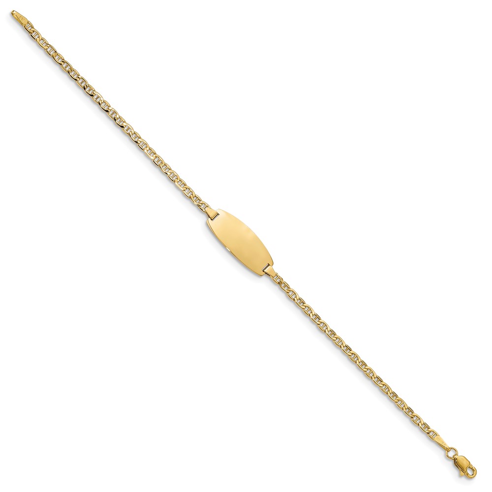 14k Polished Semi-Solid Chain/Solid Plate Anchor Link Oval 18.5x8.5mm Plate 7 inch ID Bracelet