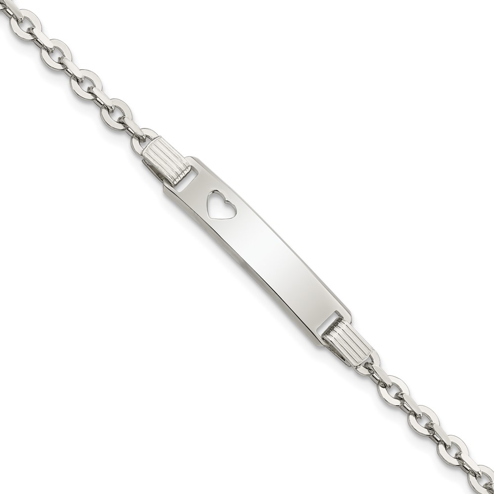Sterling Silver Polished ID W/Heart Bracelet