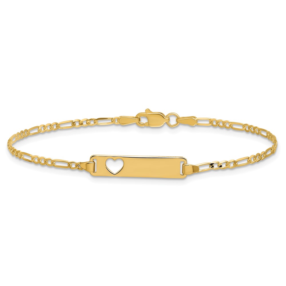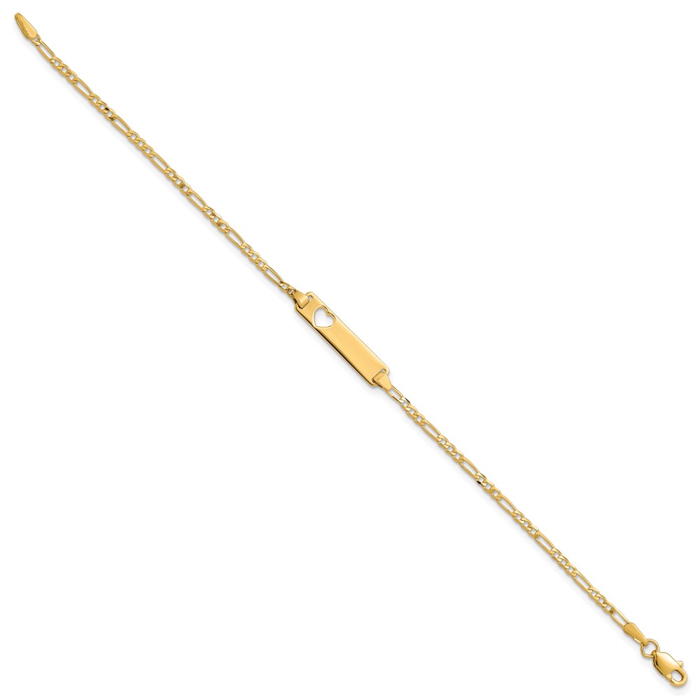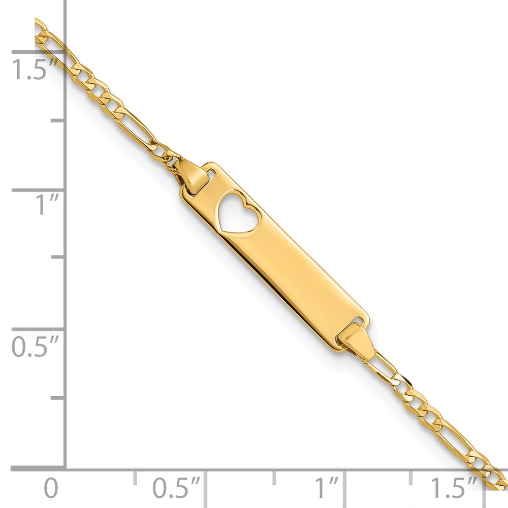 14k Polished Solid Chain/Solid Plate Figaro Link Cut-out Heart 20x5mm Plate 8 inch ID Bracelet