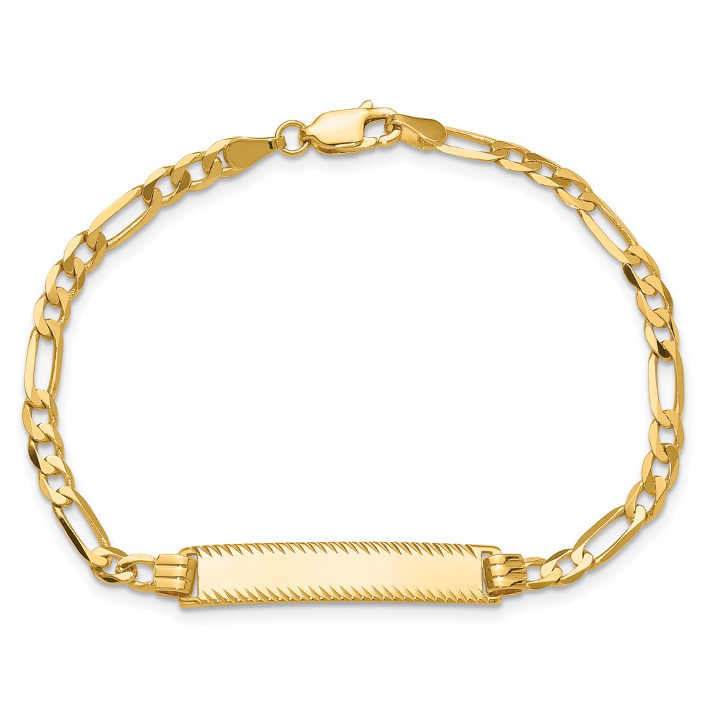 14k Polished Solid Chain/Solid Plate Flat Figaro Link Diamond-cut 29x6.5mm Plate 7 inch ID Bracelet