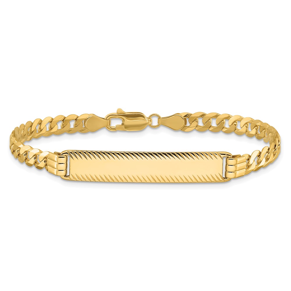 14k Polished Solid Chain/Solid Plate Curb Link Diamond-cut 34x7mm Plate 8 inch ID Bracelet