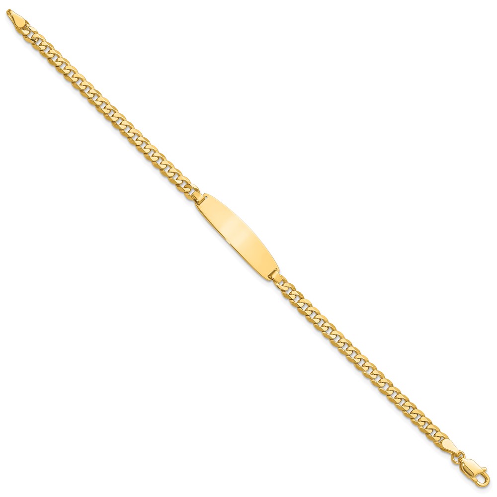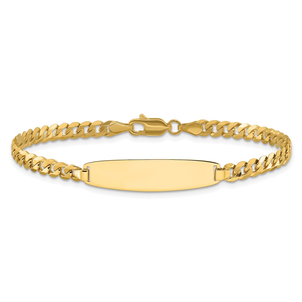 14k Polished Solid Chain/Solid Plate Flat Curb Link Rounded 32.5x7.4mm Plate 8 inch ID Bracelet