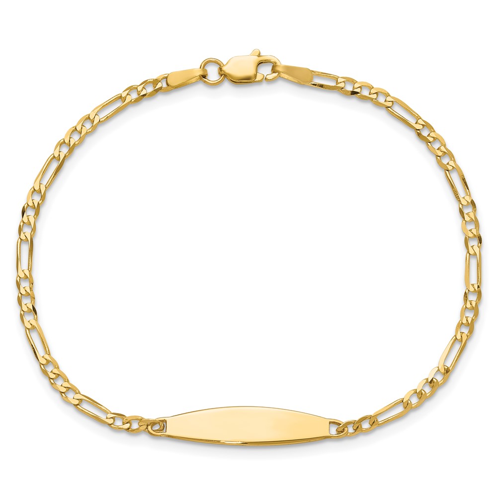 14k Polished Solid Chain/Solid Plate Figaro Link 24.6x5.5mm Plate 8 inch ID Bracelet