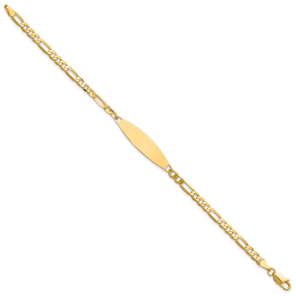 14k Polished Solid Chain/Solid Plate 3.0mm Figaro Link 29x7.5mm Plate 7 inch ID Bracelet