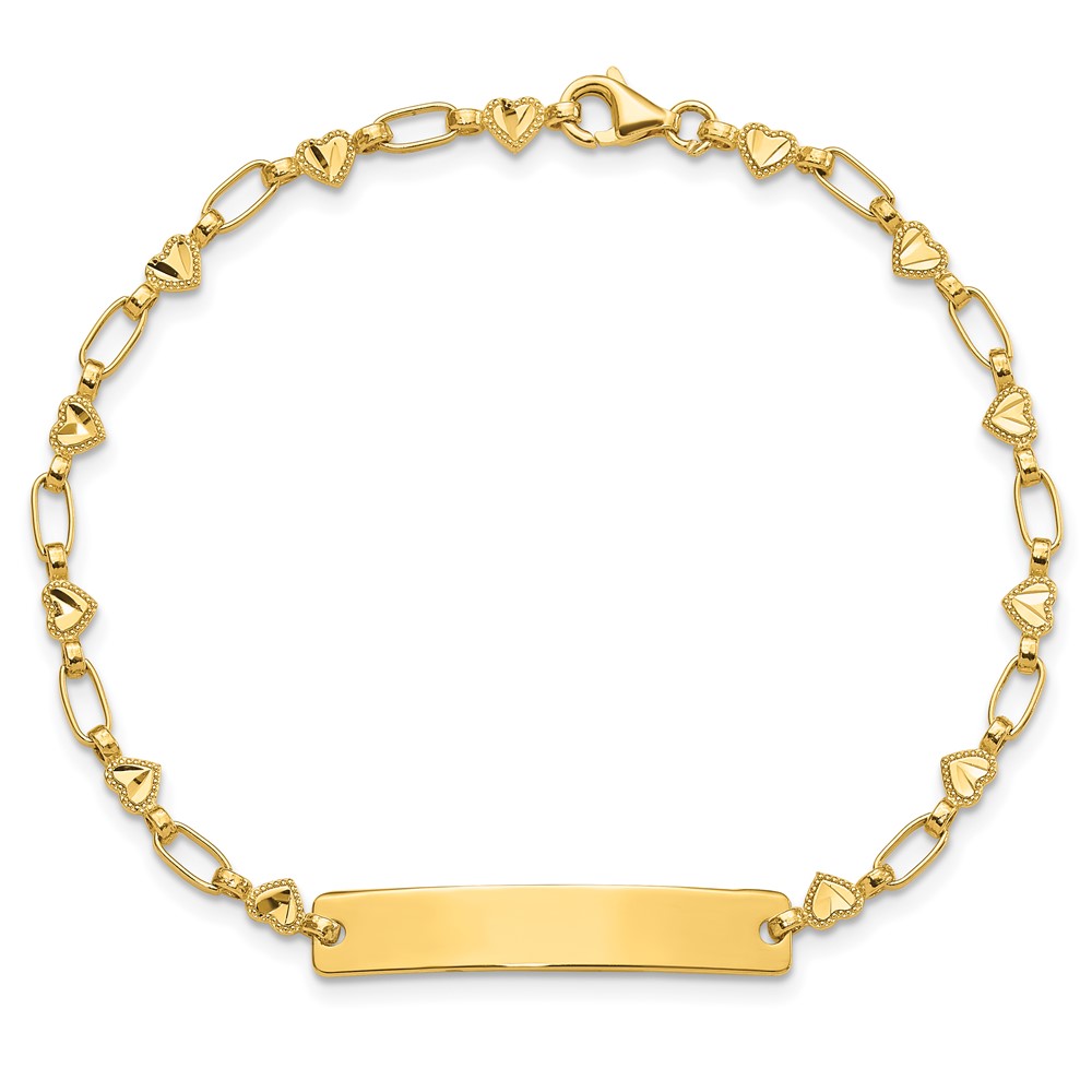 Sterling Silver Gold-tone 7.5 inch Hearts ID Bracelet