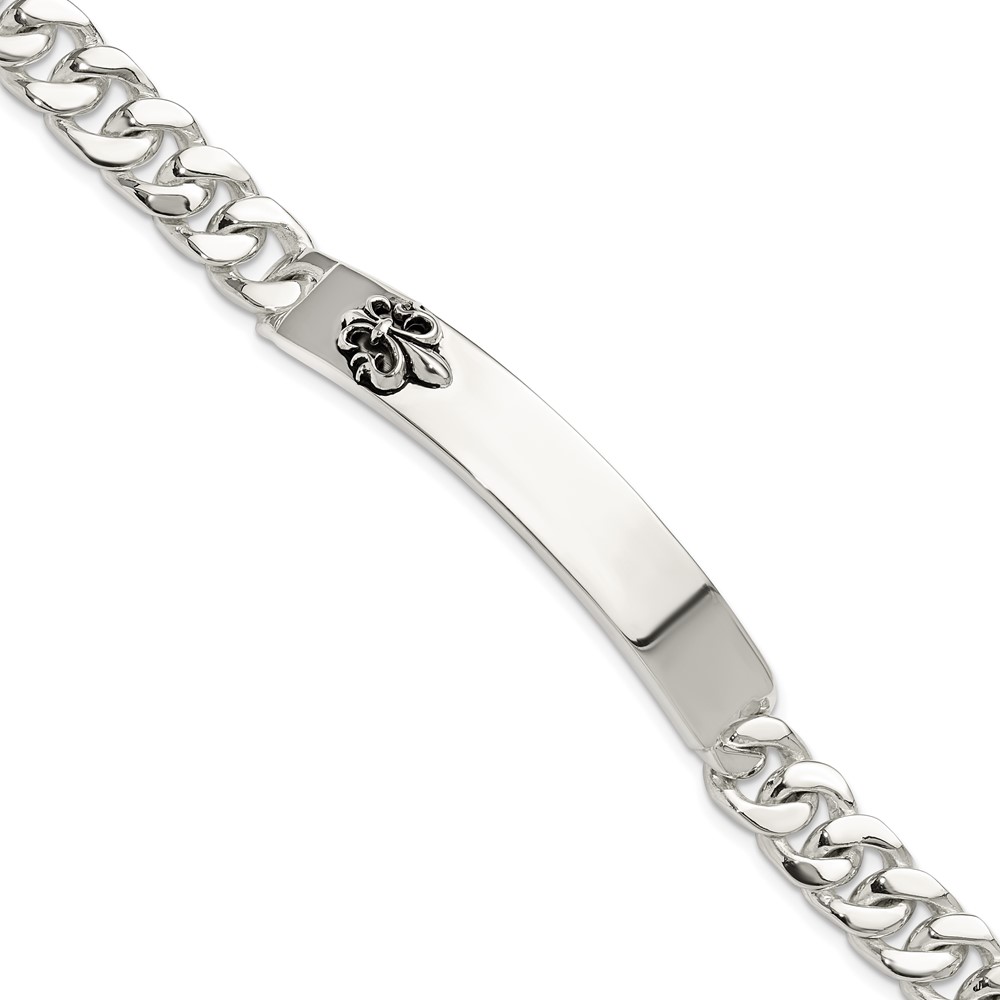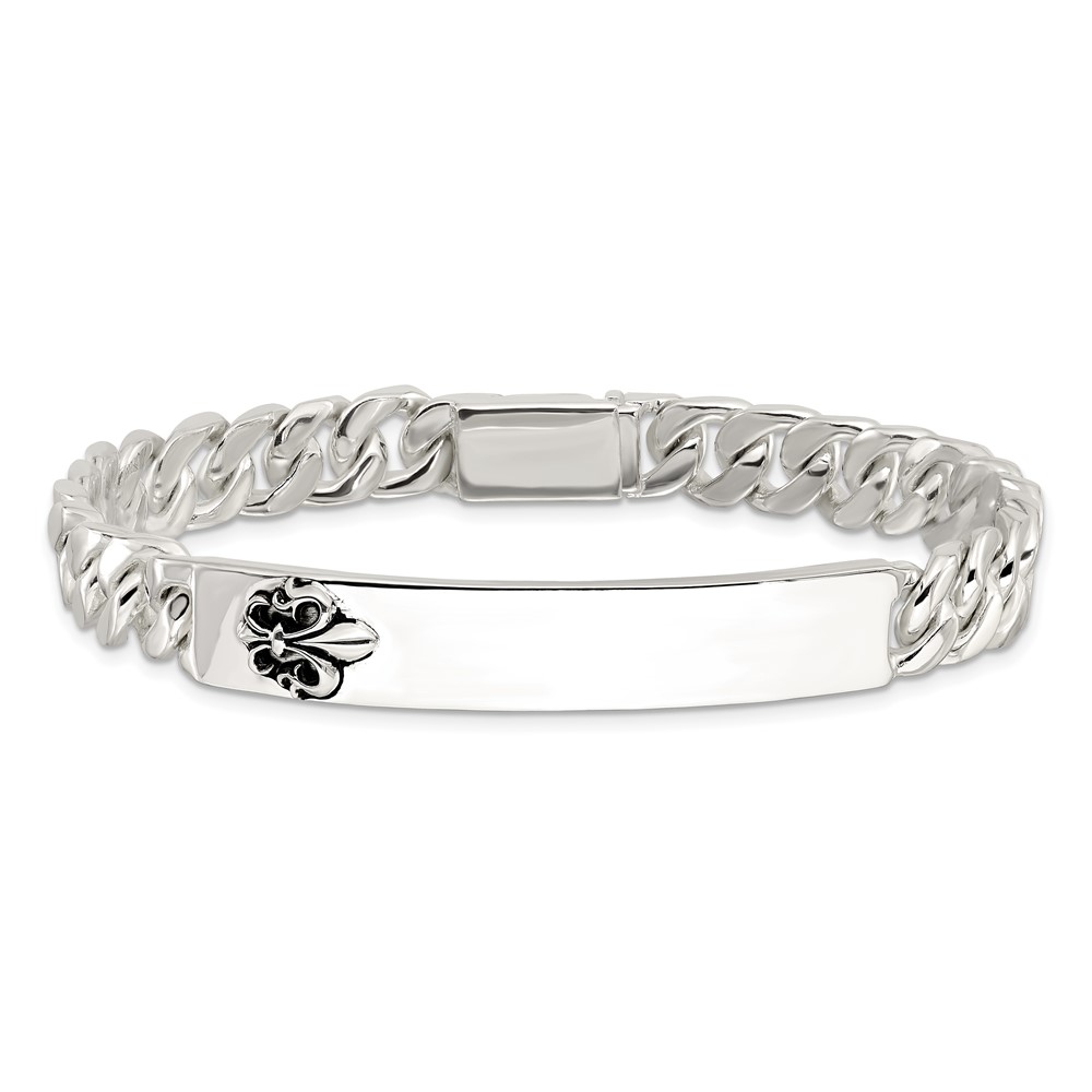 Sterling Silver Antiqued Fleur-de-lis ID Men's Bracelet