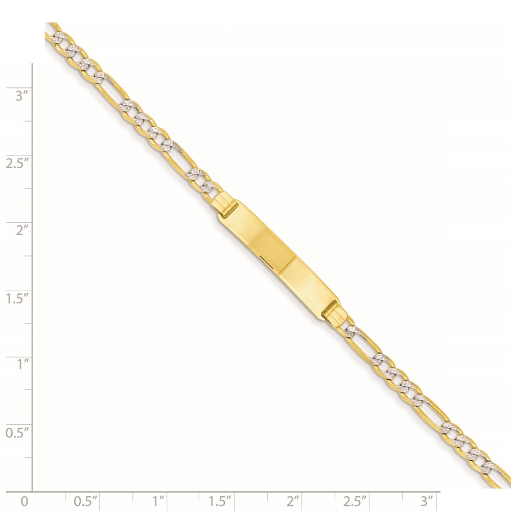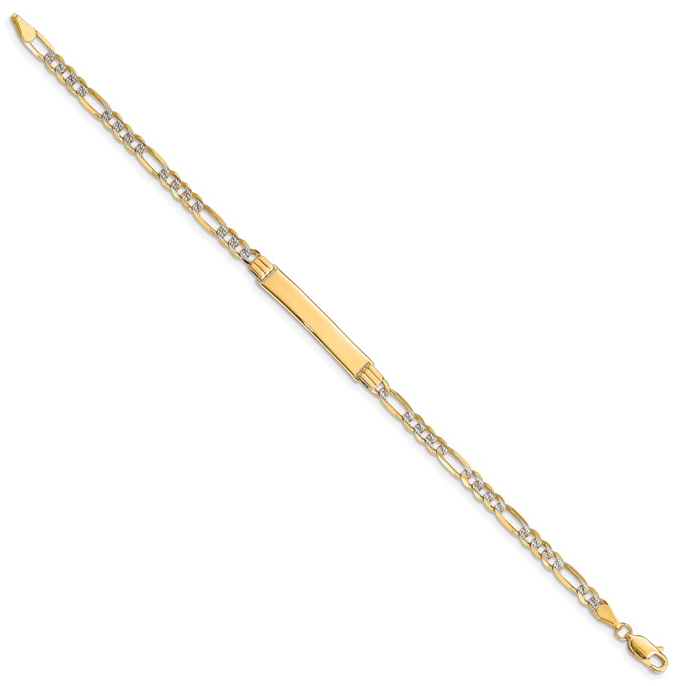 14k Polished with Rhodium Pavé Solid Chain/Solid Plate Figaro Link 25.5x5mm Plate 7 inch ID Bracelet