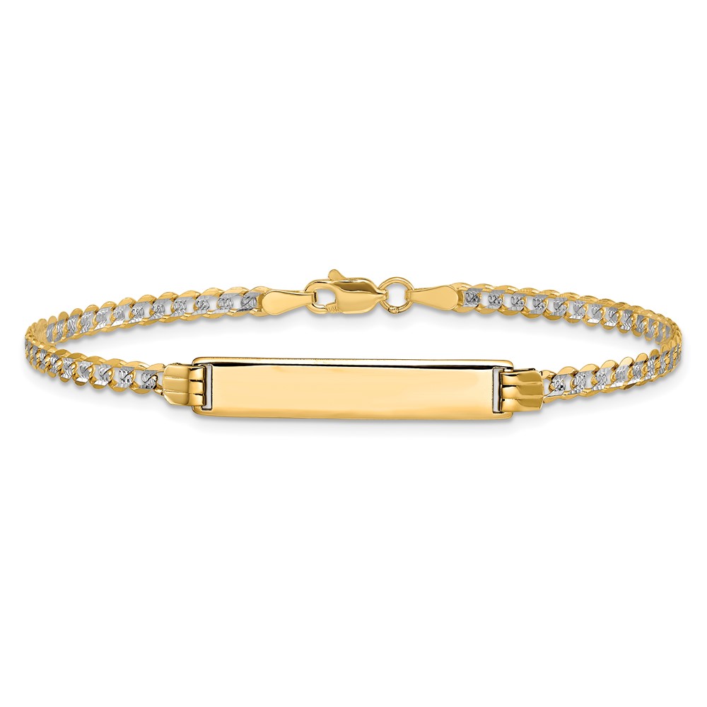 14k Polished with Rhodium Pavé Solid Chain/Solid Plate Curb Link 25.5x5mm Plate 7 inch ID Bracelet