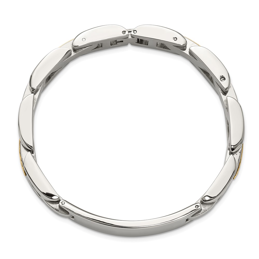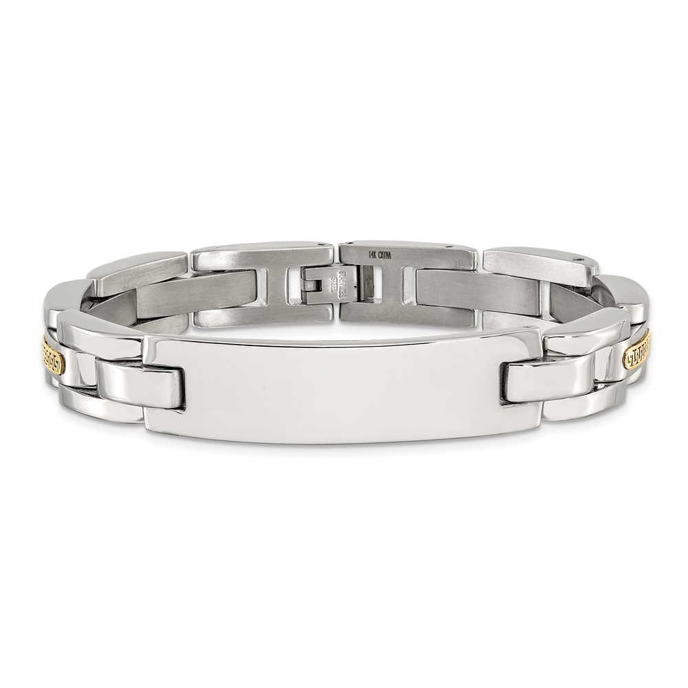 Chisel Stainless Steel Polished with 14K Gold Accent 8.5 inch ID Link Bracelet