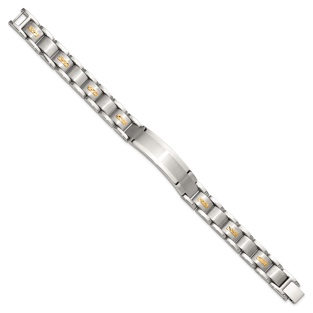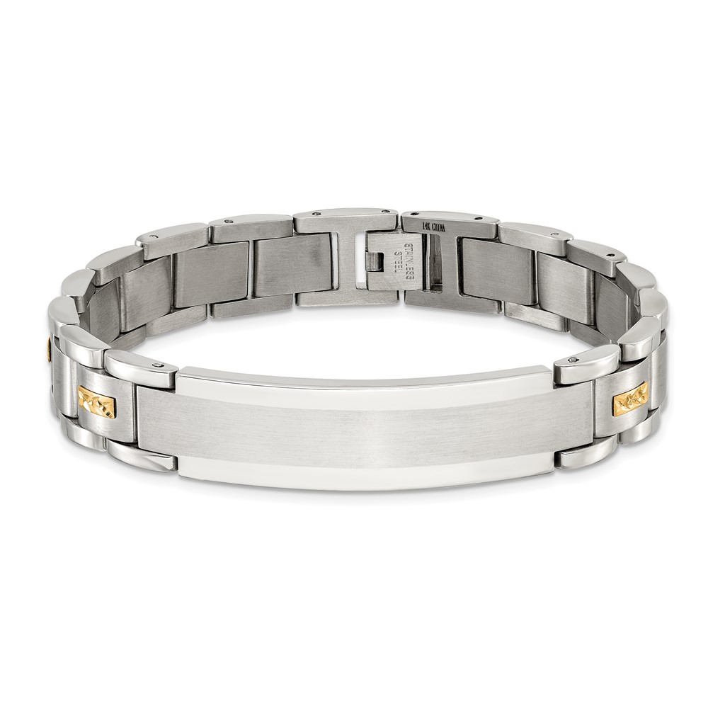 Chisel Stainless Steel Brushed and Polished with Diamond-cut 14K Gold Accent 8.5 inch ID Link Bracelet