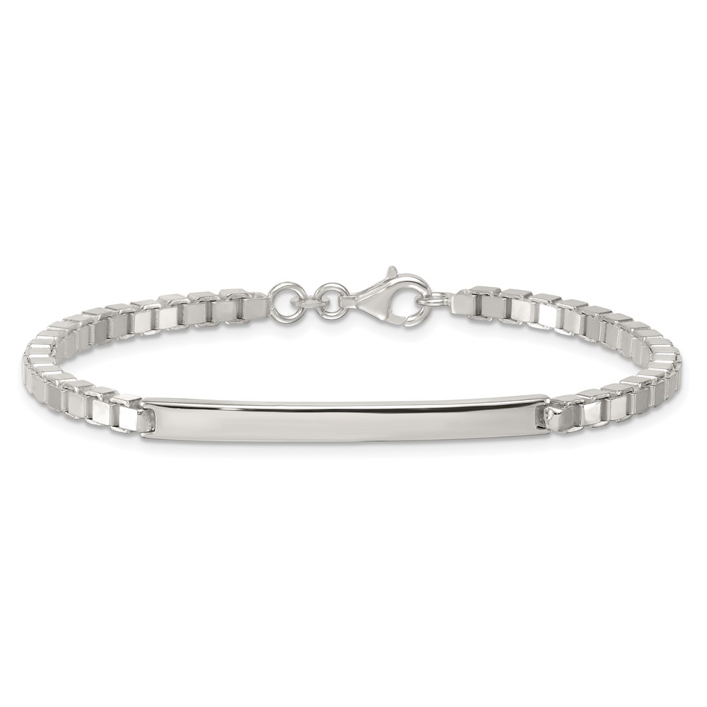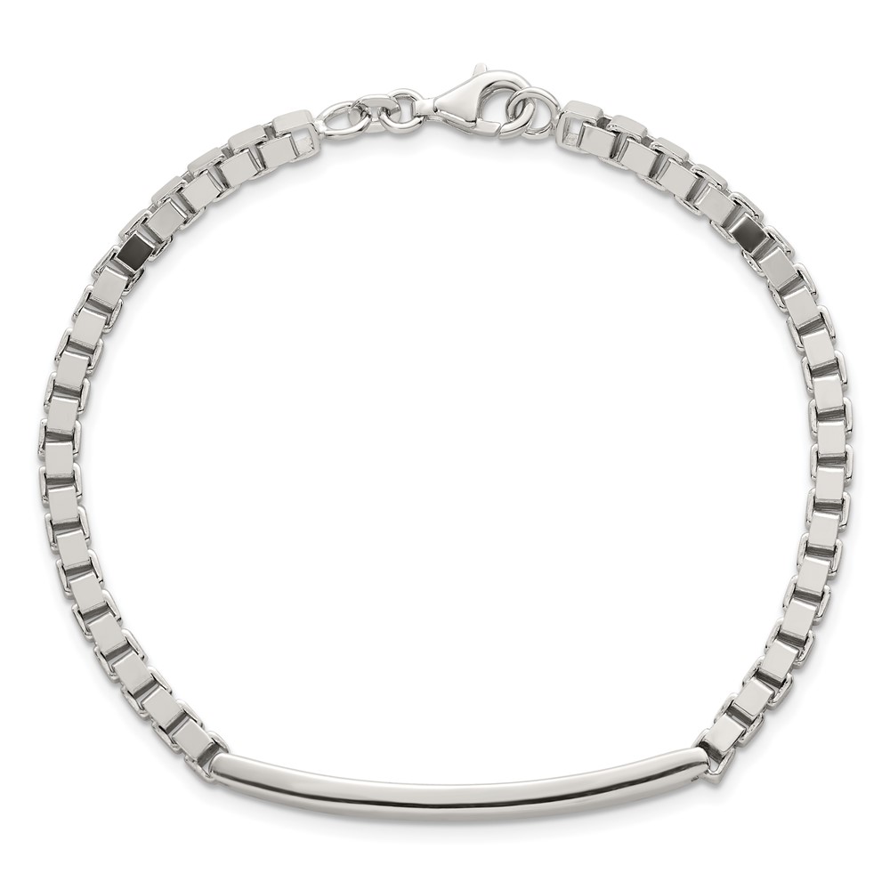 Sterling Silver Polished 3.7mm Box Chain 8 Inch ID Bar Mens Bracelet