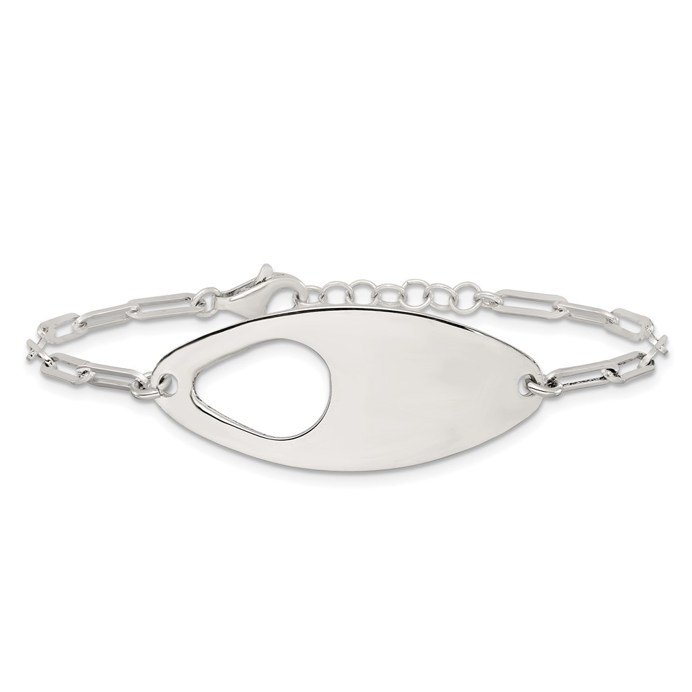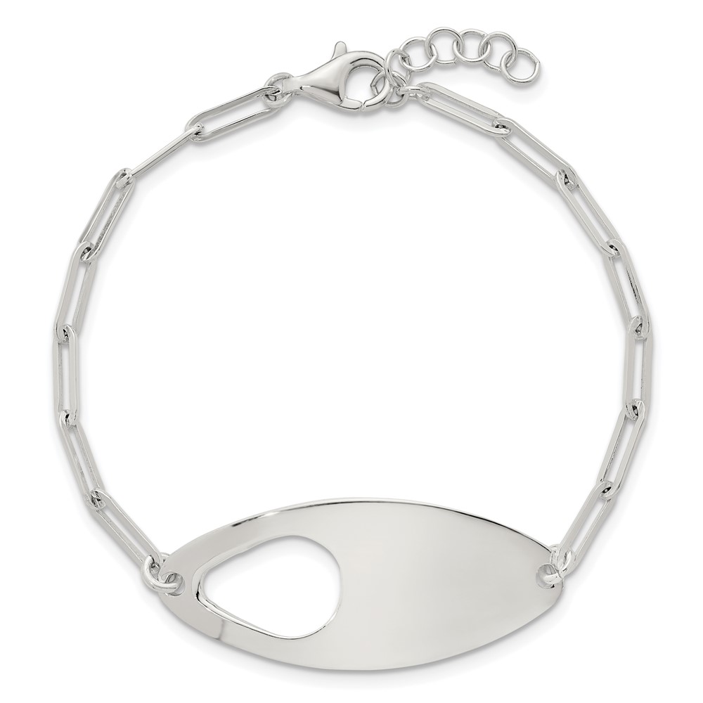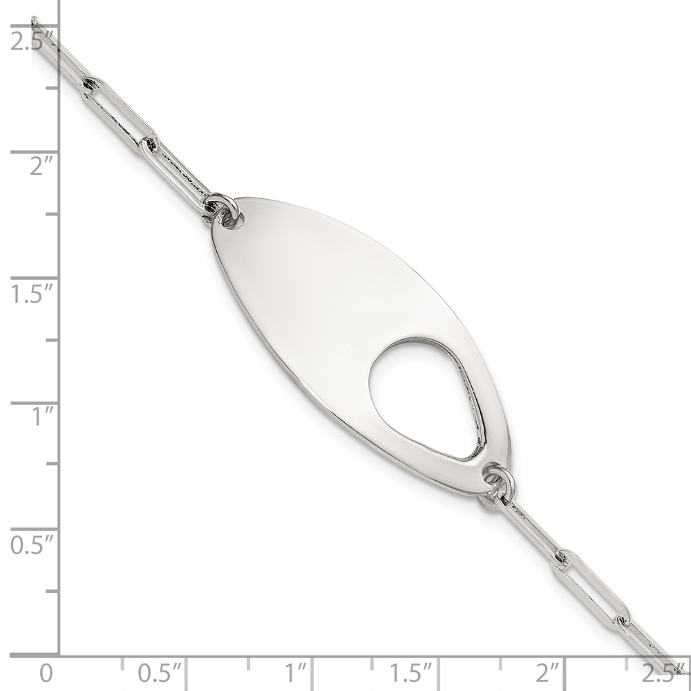 Sterling Silver Fancy Geometric Center with Paperclip Link 7 inch with 0.5 inch Extension Bracelet
