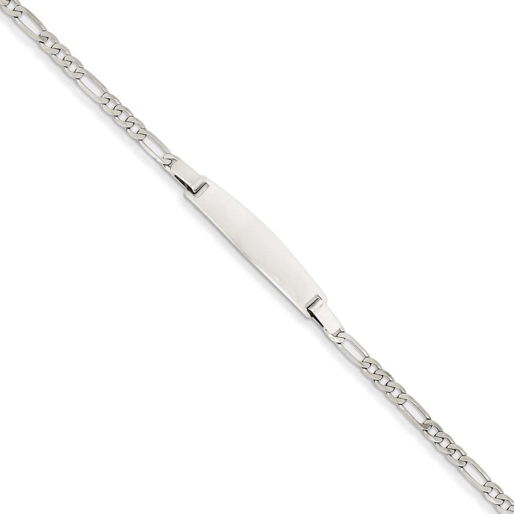 14k White Gold 7in Solid Polished Figaro Link ID Bracelet