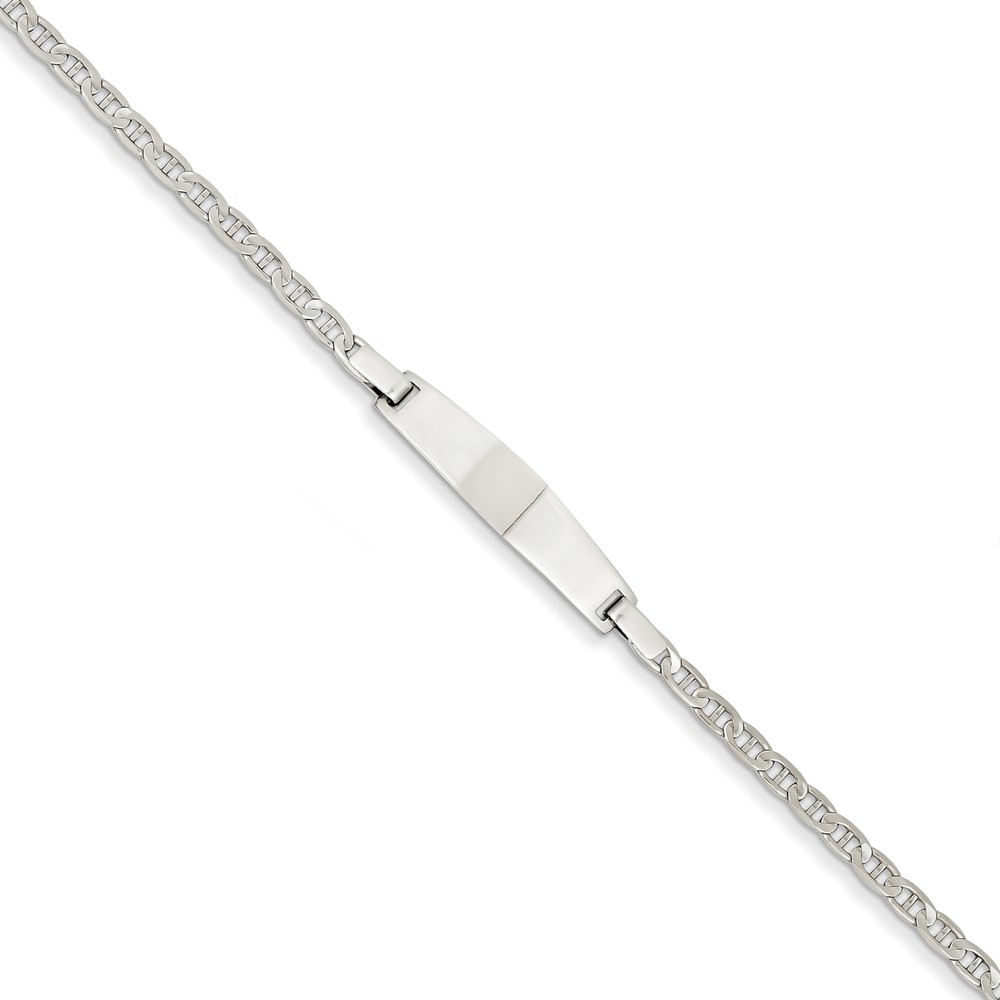 14k White Gold 7in Solid Polished Anchor Link ID Bracelet
