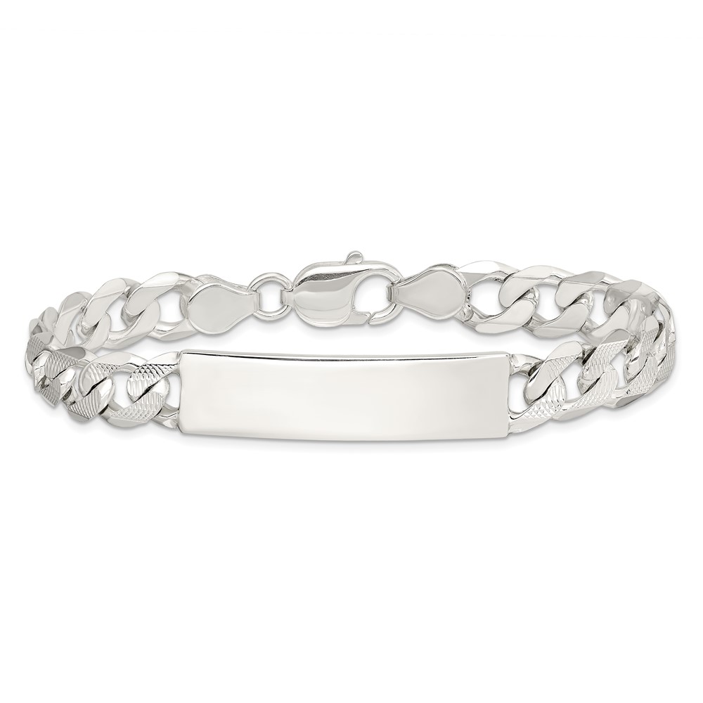 Sterling Silver Polished Engraveable Patterned Curb Link ID Bracelet