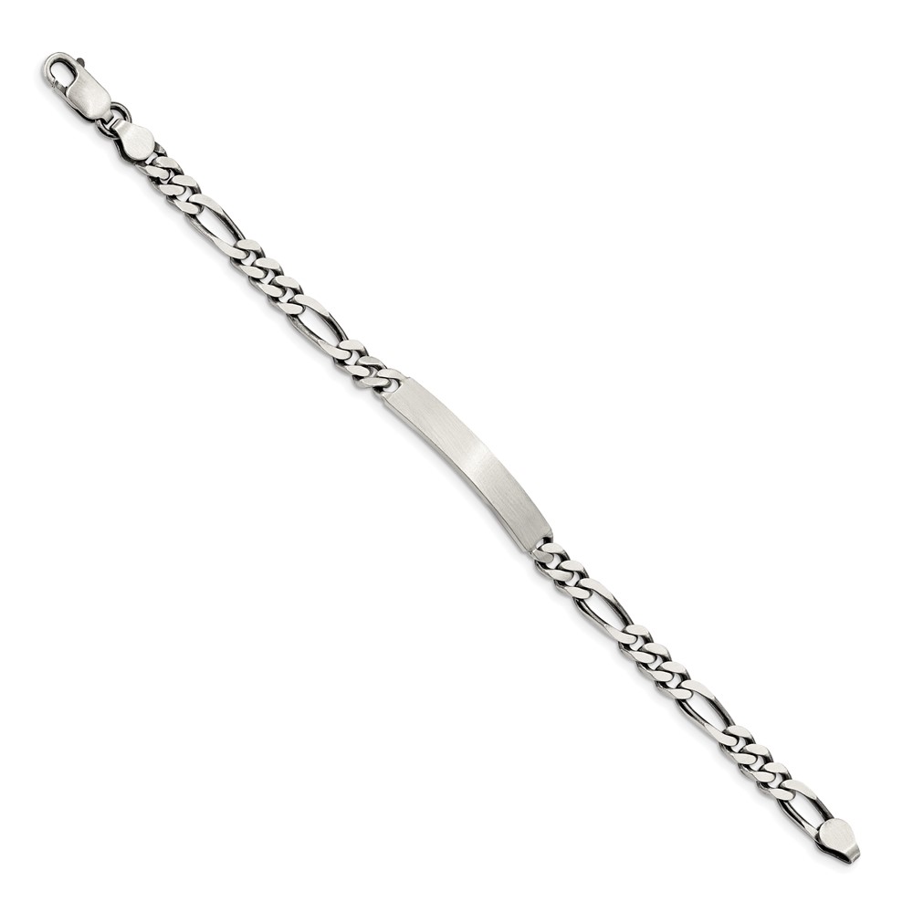 Sterling Silver 7inch Engraveable Antiqued Figaro Link ID Bracelet