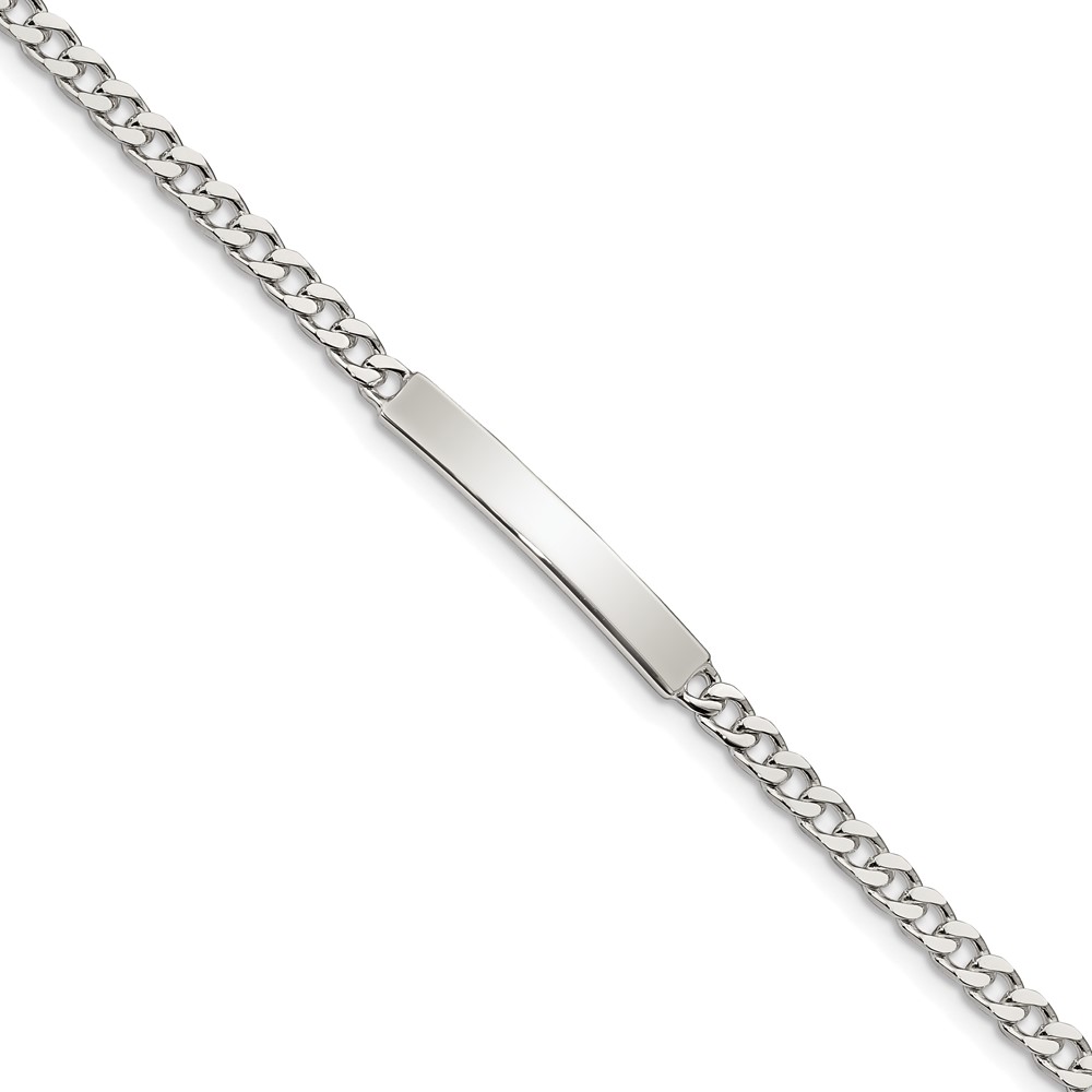 Sterling Silver Polished Engraveable Curb Link ID Bracelet