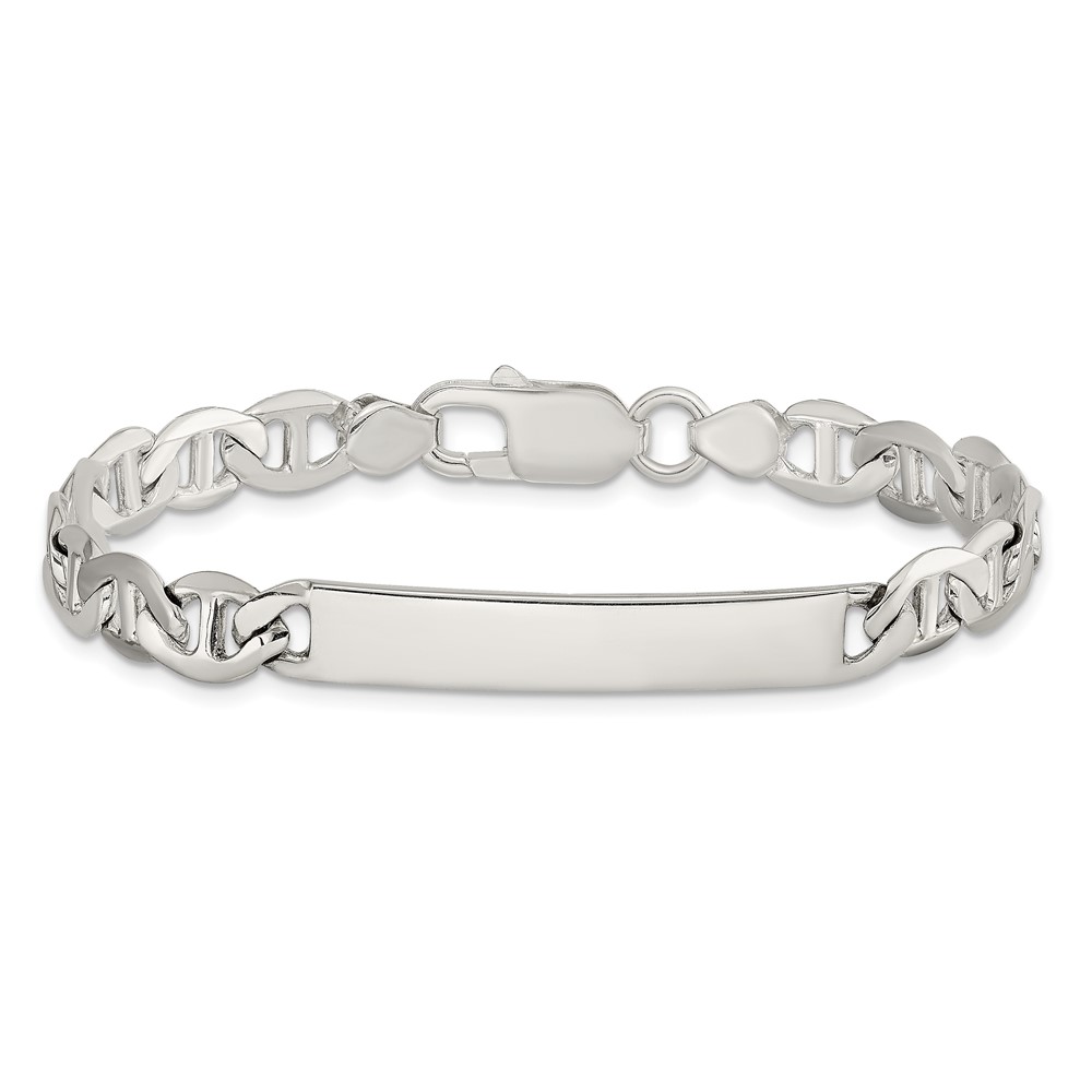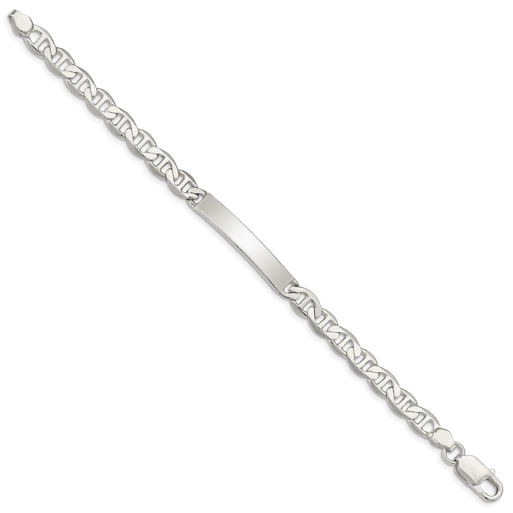 Sterling Silver Polished Engraveable Anchor Link ID Bracelet