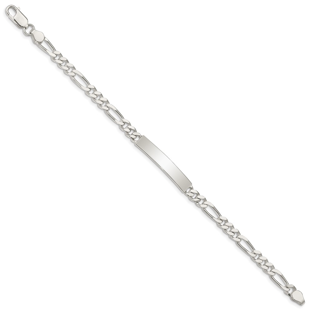 Sterling Silver Polished Engraveable Figaro Link ID Bracelet