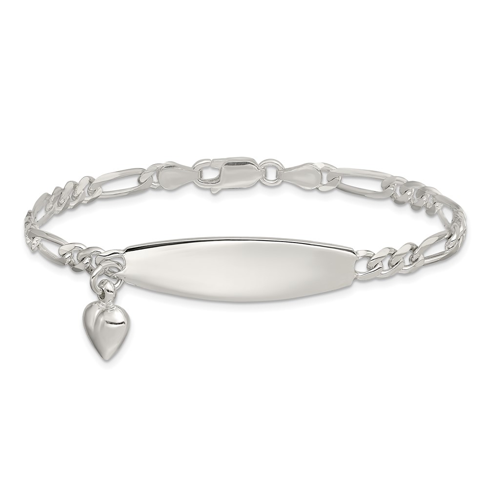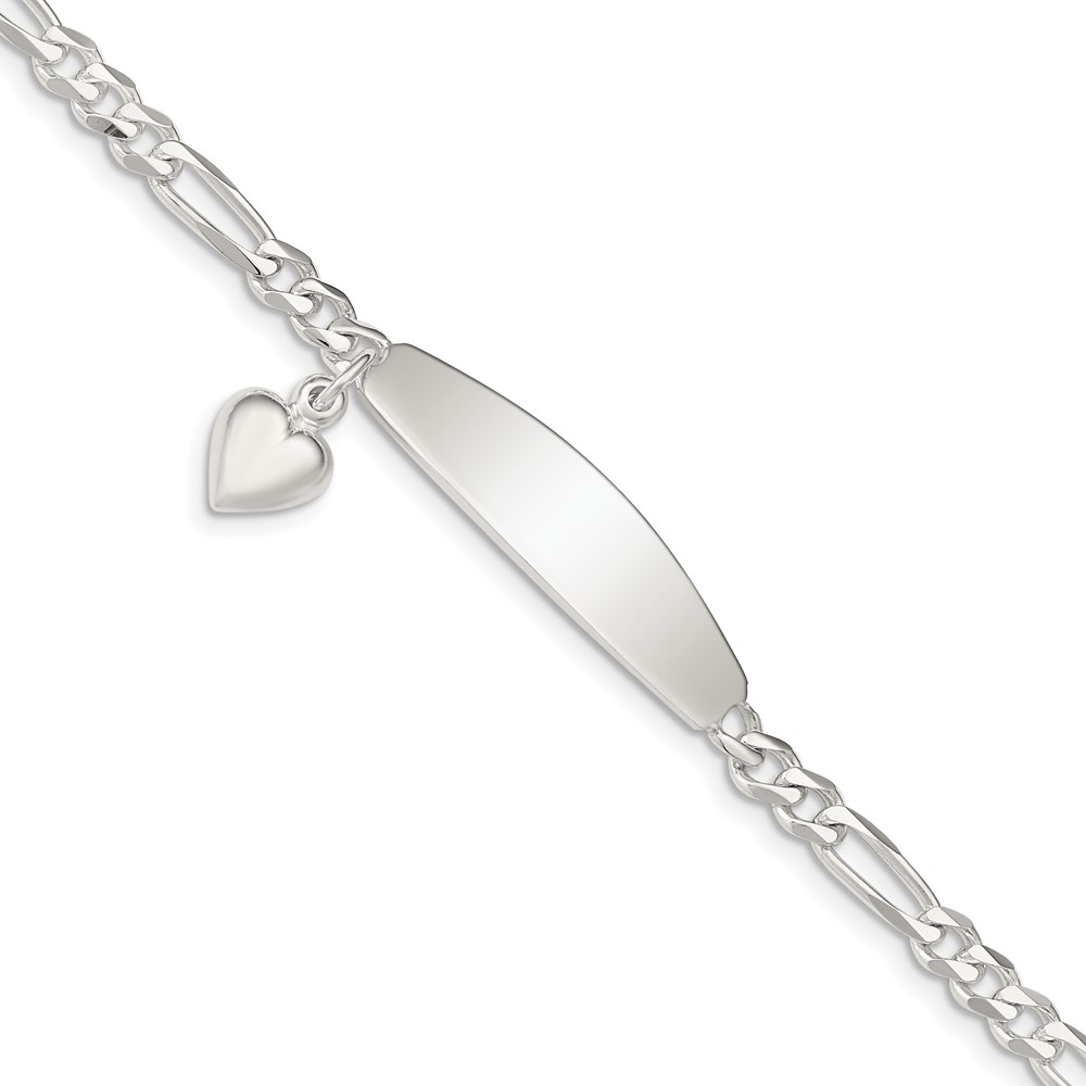 Sterling Silver ID with Heart Figaro Link Bracelet