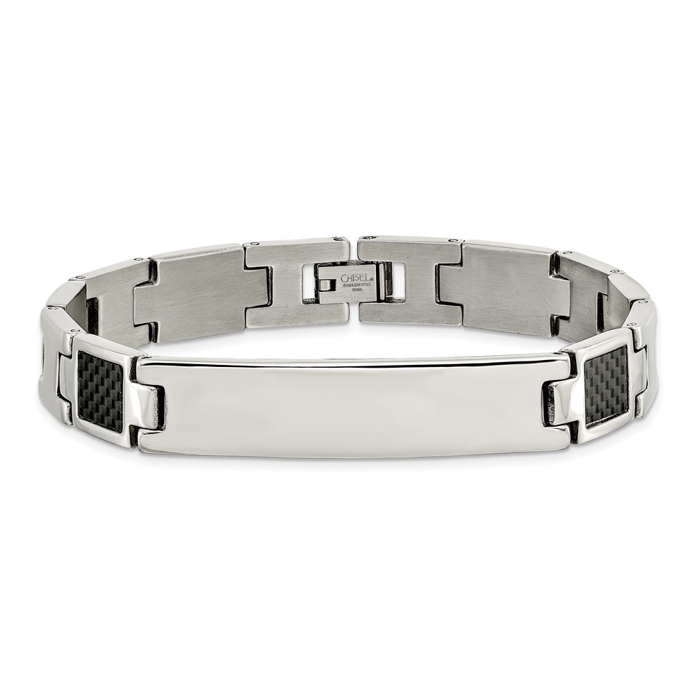 Chisel Stainless Steel Brushed and Polished Black Carbon Fiber Inlay 8.5 inch ID Bracelet