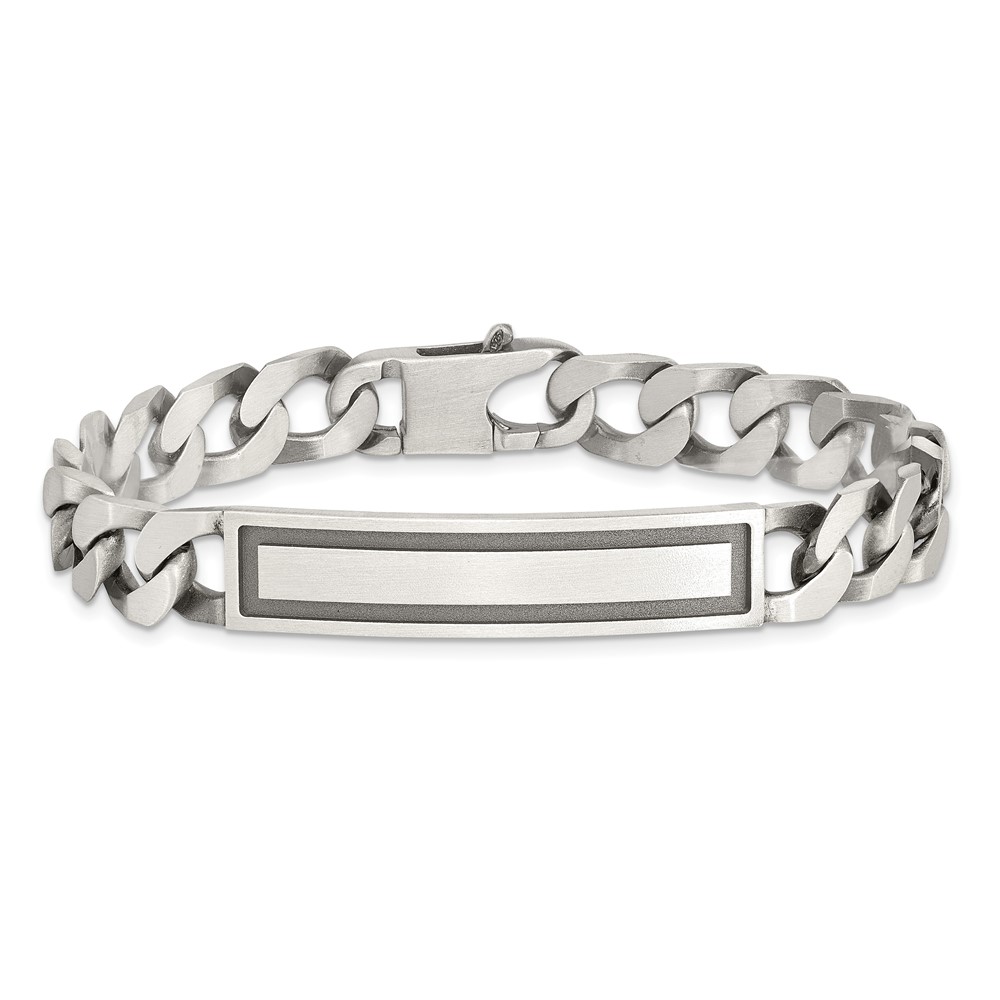 Sterling Silver Antiqued Satin Curb Link ID Bracelet