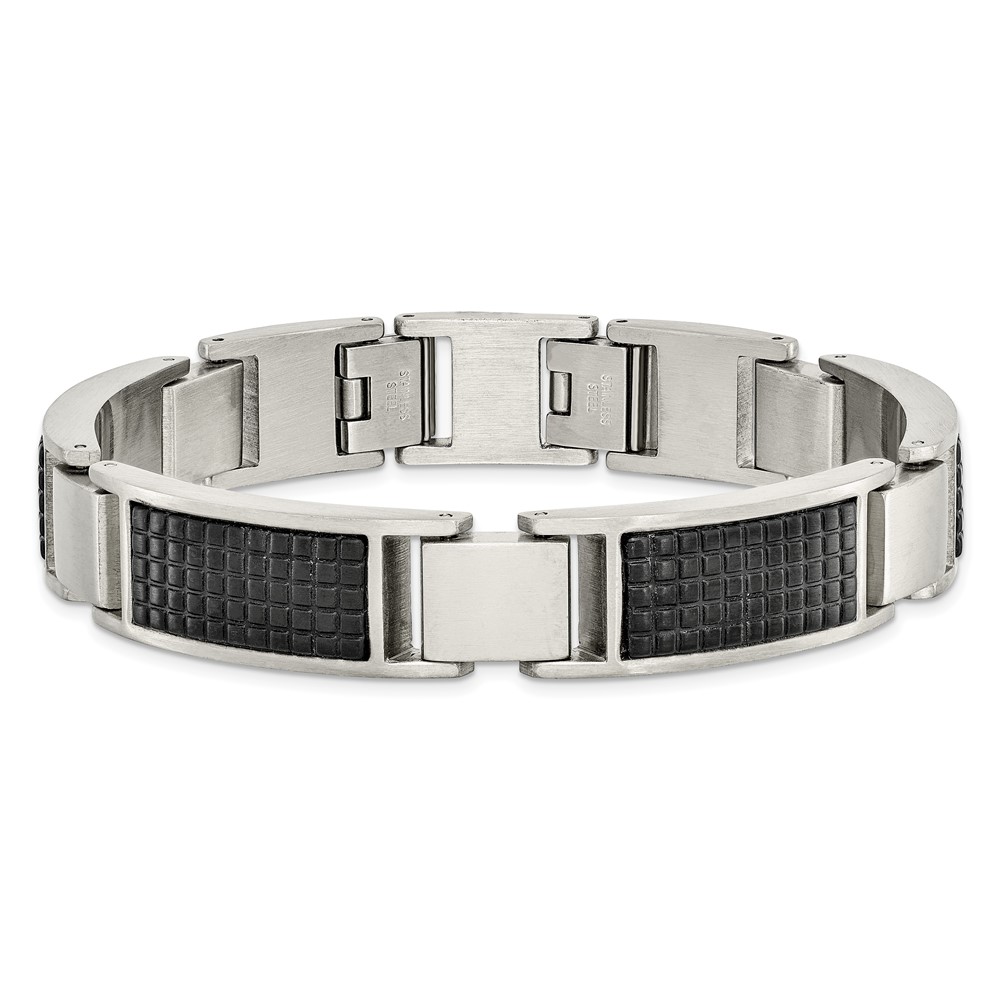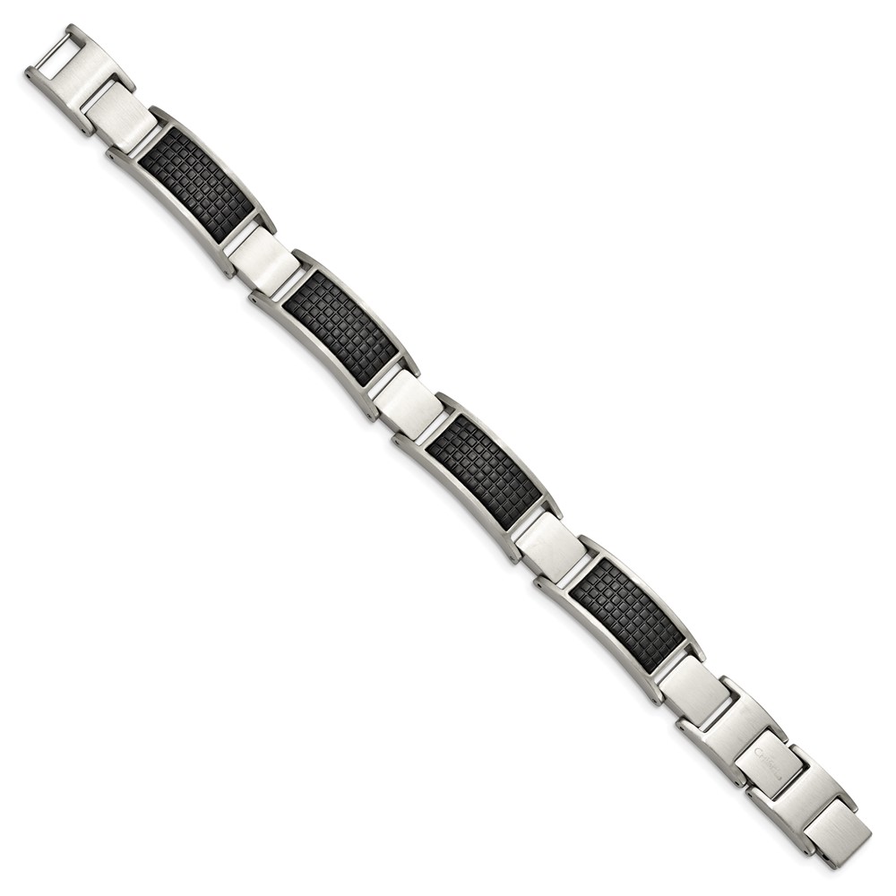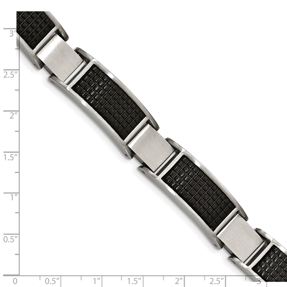 Chisel Stainless Steel Brushed and Textured Black IP-plated 8 inch Link Bracelet with .5 inch Extension