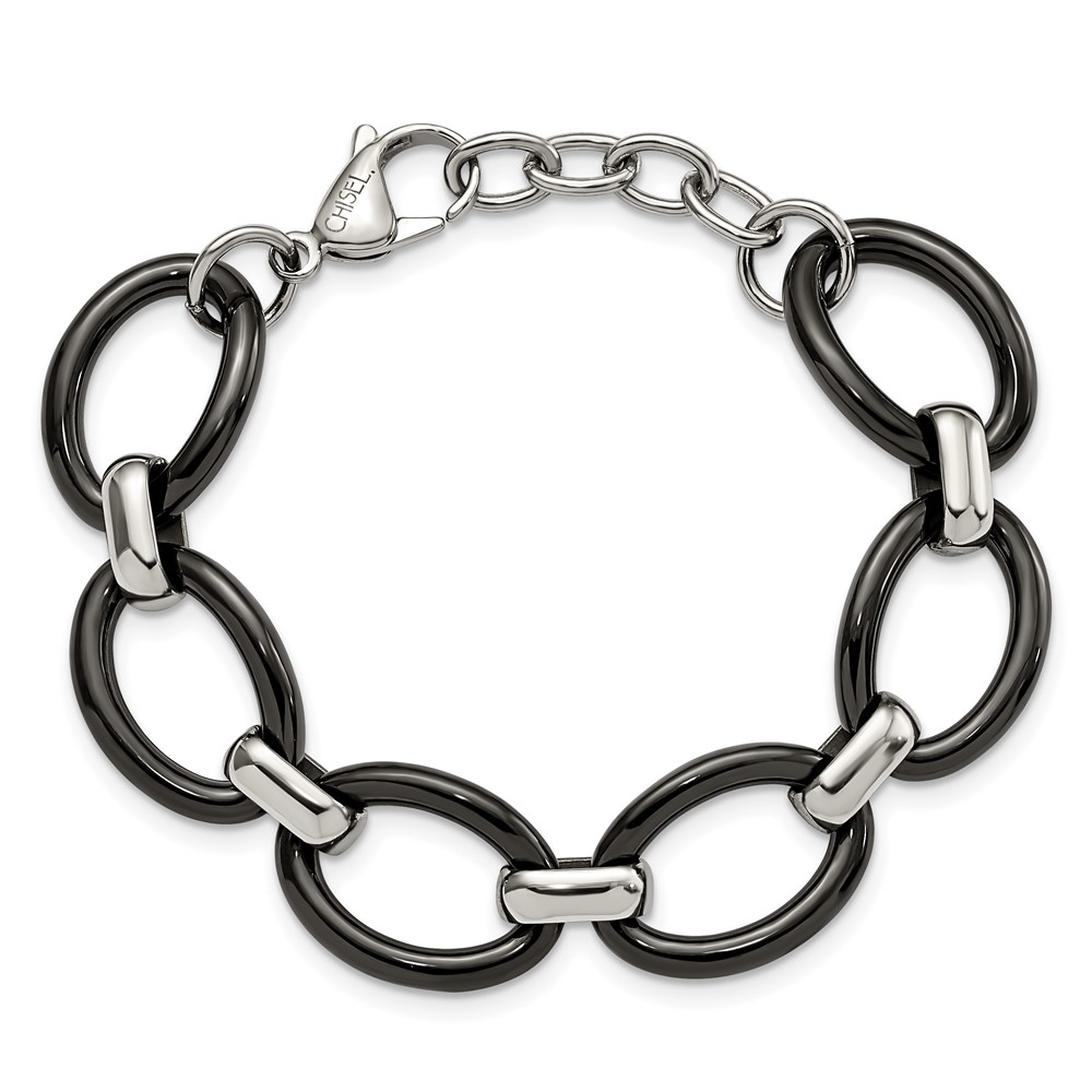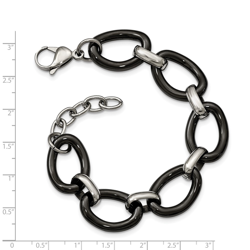 Stainless Steel Polished w/Black Ceramic w/1in ext. 7in Bracelet