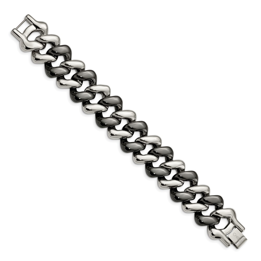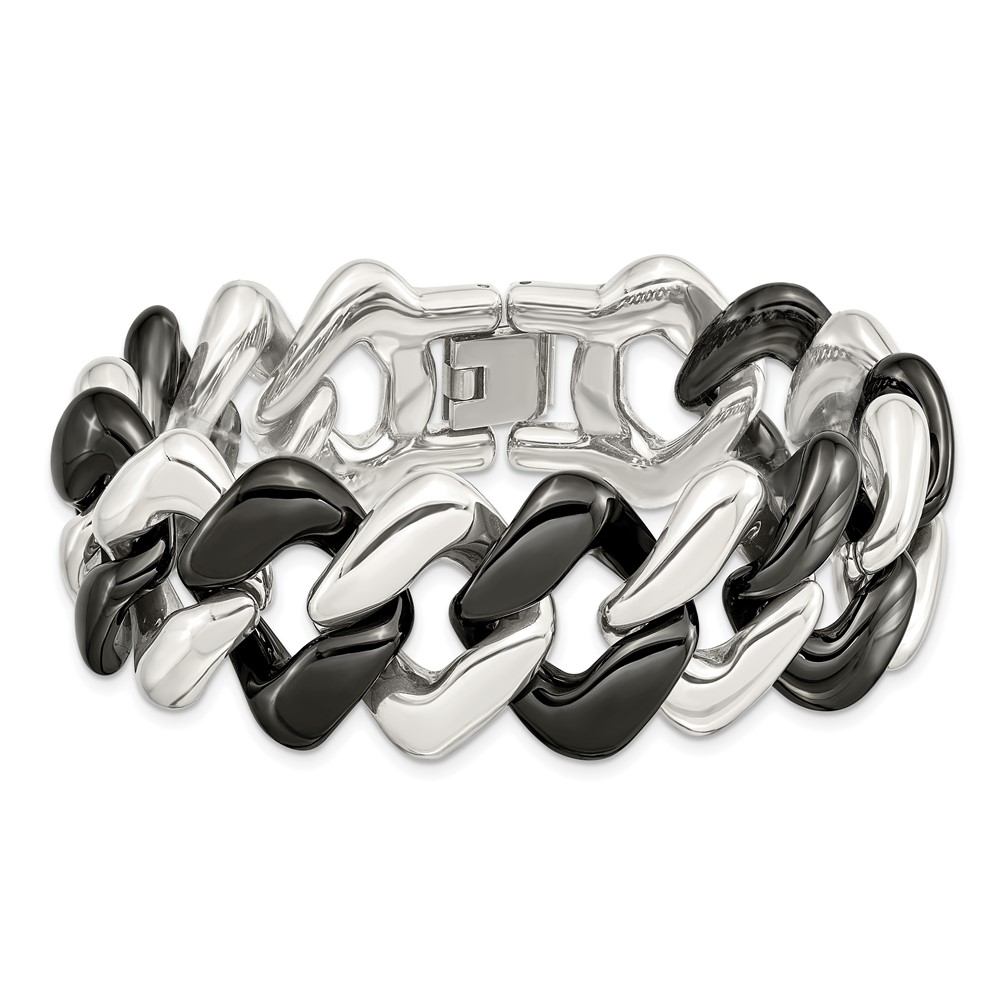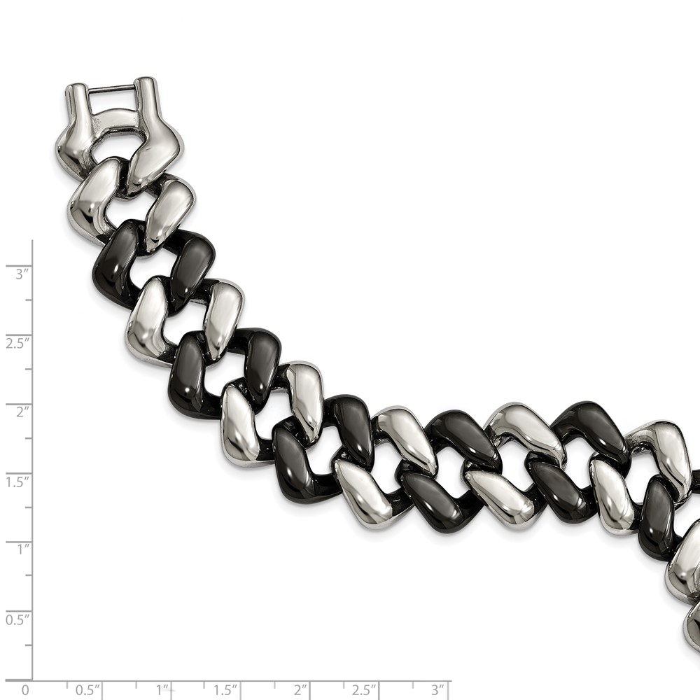 Stainless Steel Polished w/Black Ceramic 7.5in Bracelet