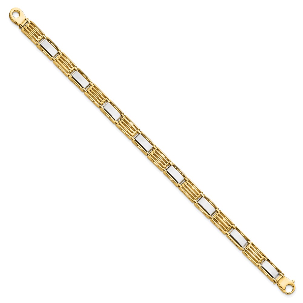 14k Two-tone High Polished 7.4mm Fancy Bar Link 8.5 inch Mens Bracelet
