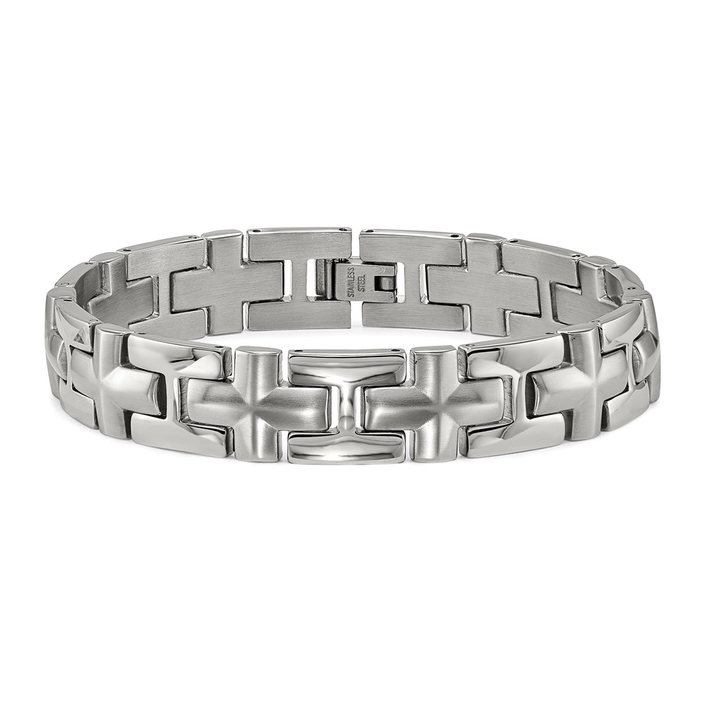 Chisel Stainless Steel Brushed and Polished 8.5 inch Cross Link Bracelet