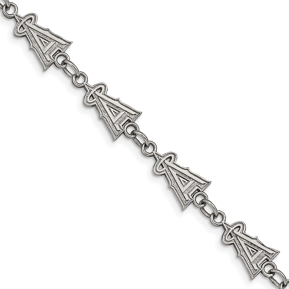 Stainless Steel Major League Baseball LogoArt Los Angeles Angels Logo w/1.5in ext Bracelet