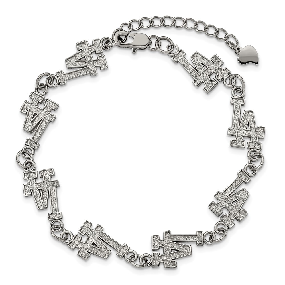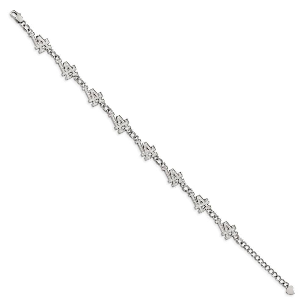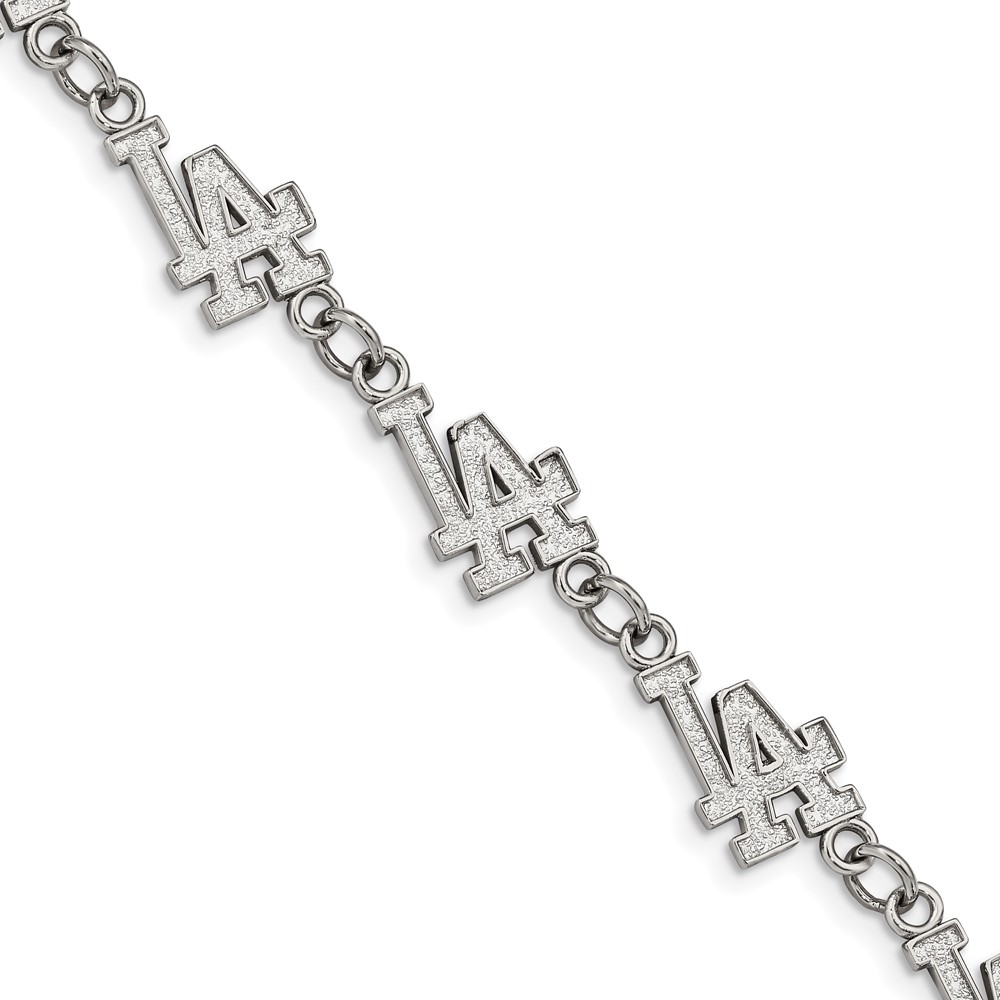 Stainless Steel Major League Baseball LogoArt Los Angeles Dodgers Link Bracelet