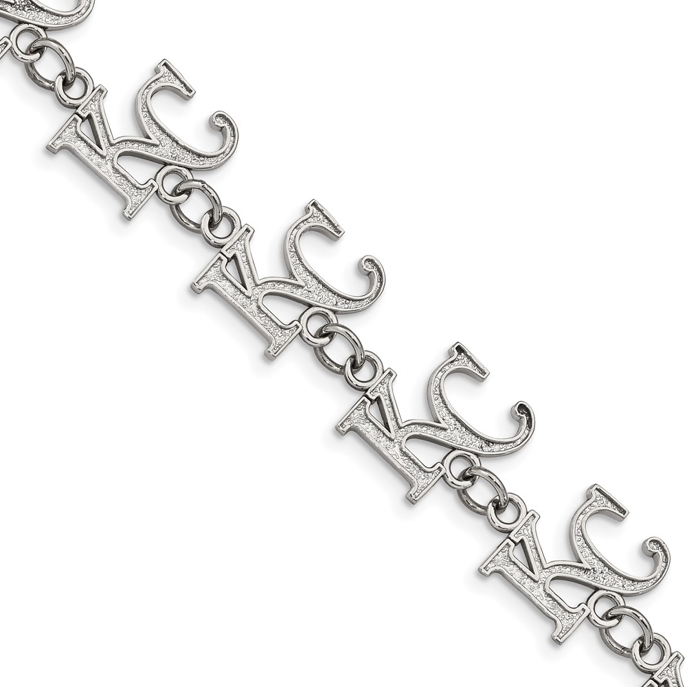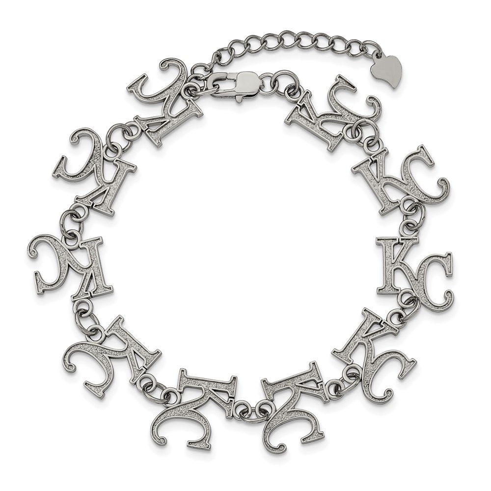 Stainless Steel Major League Baseball LogoArt Kansas City Royals K-C w/1.5in ext Bracelet
