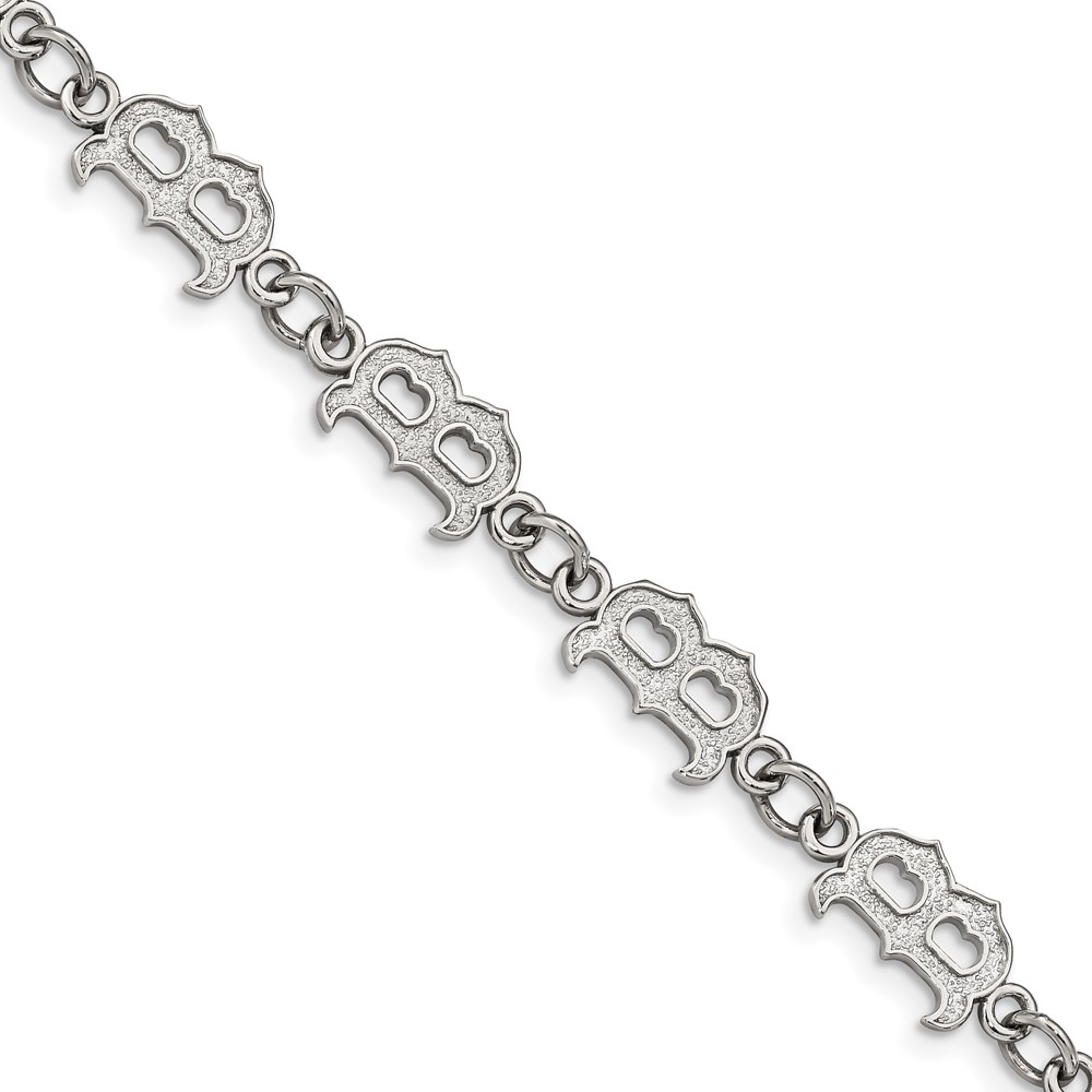 Stainless Steel Major League Baseball LogoArt Boston Red Sox w/2in ext Bracelet