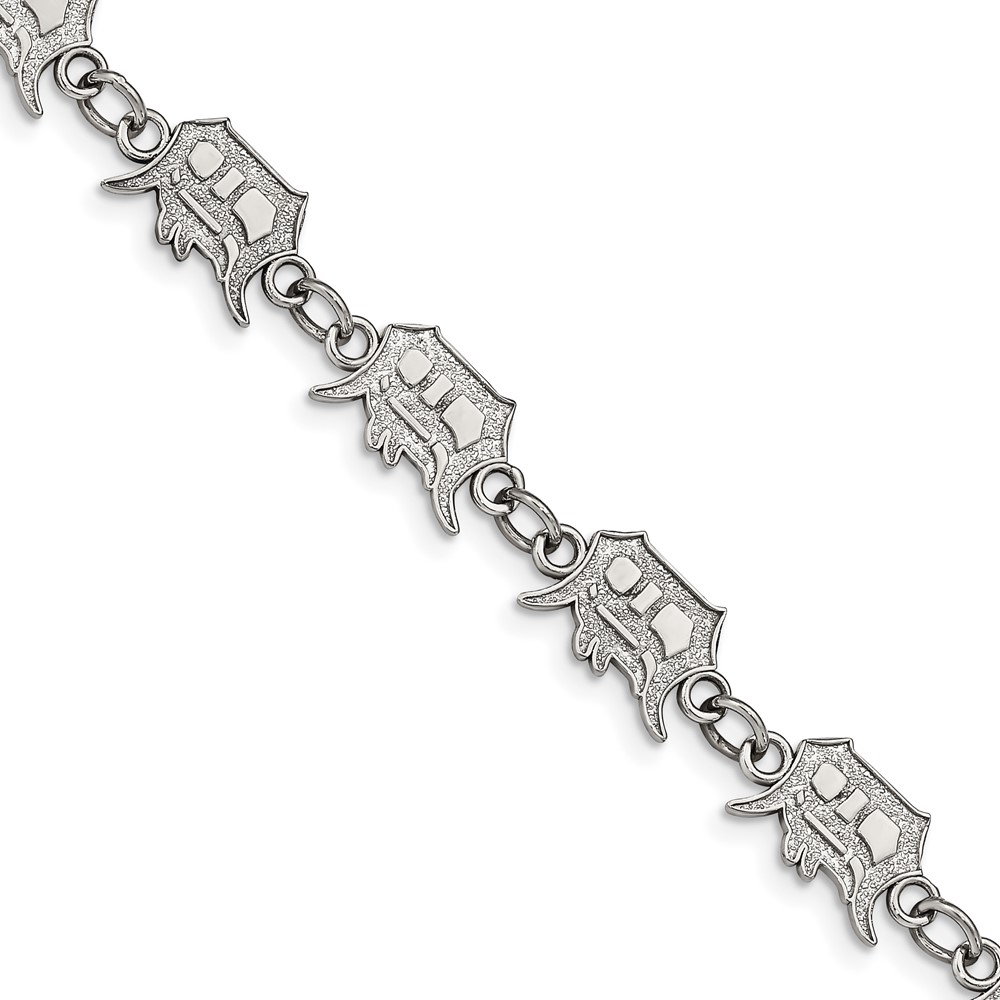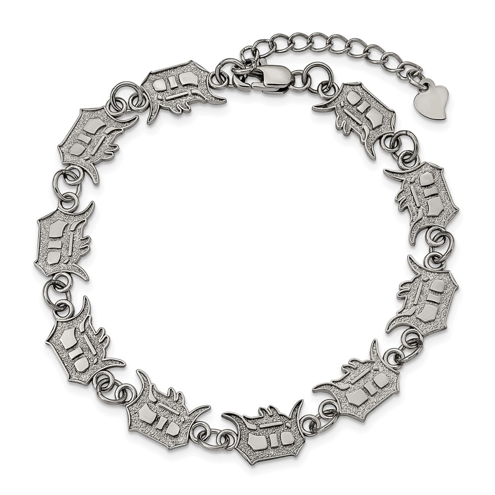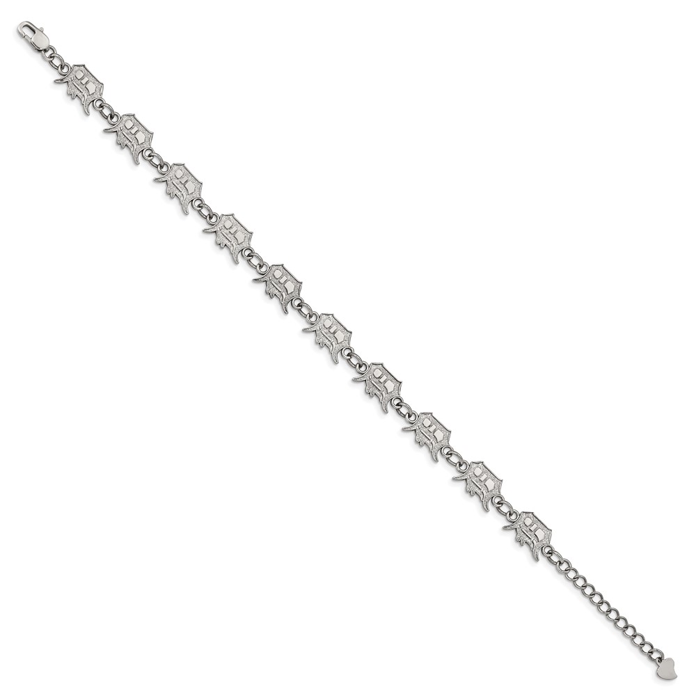 Stainless Steel Major League Baseball LogoArt Detroit Tigers Logo w/2in ext Bracelet