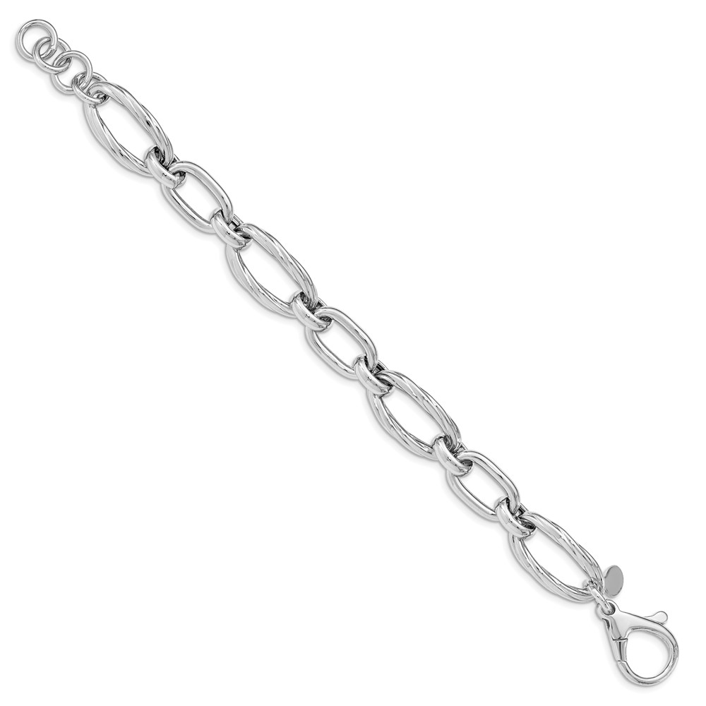 Sterling Silver Rhodium Plated Polished Link Bracelet