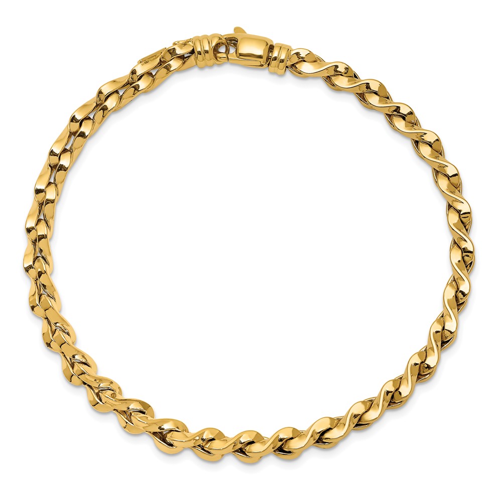 14K Polished and Textured Woven Double Strand with Oval Links 7.25 inch Bracelet